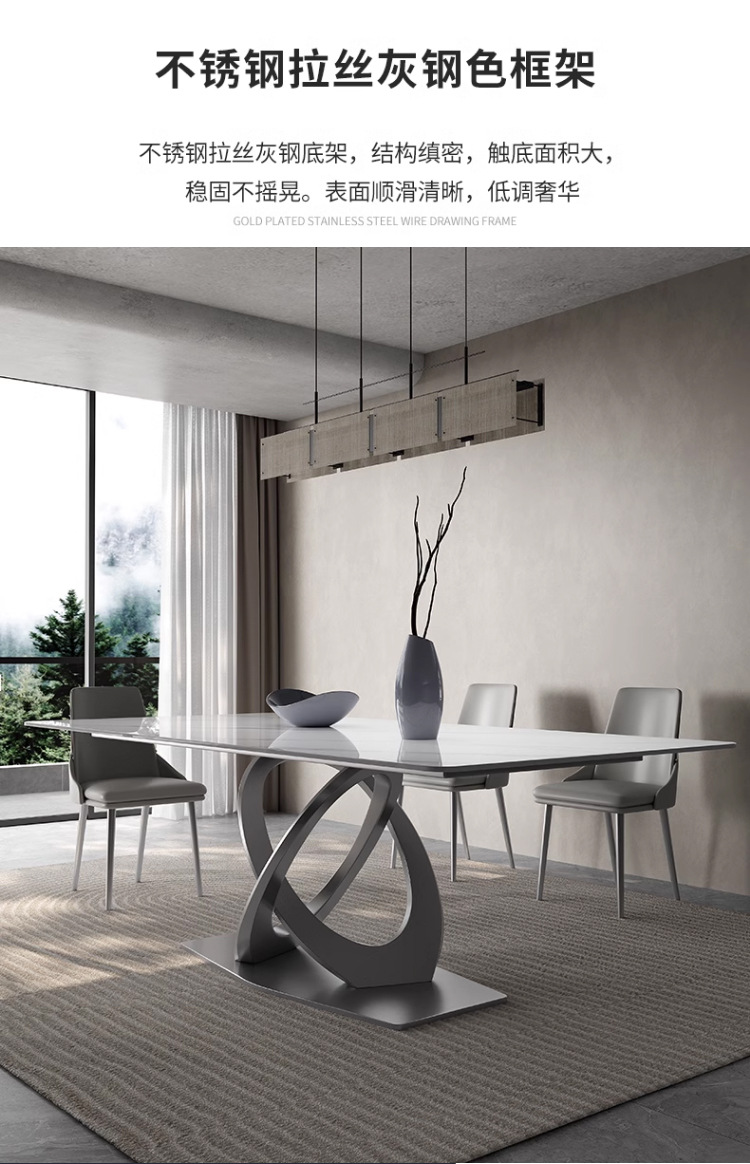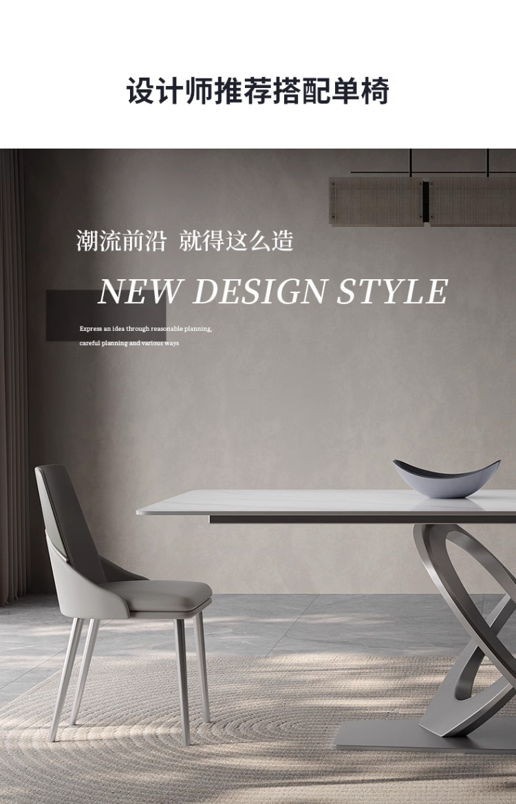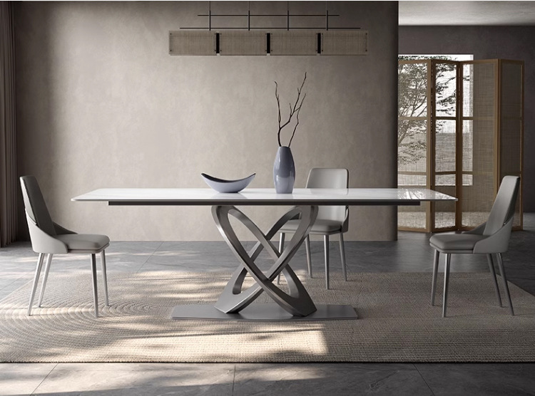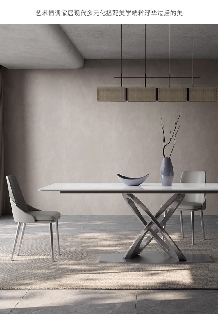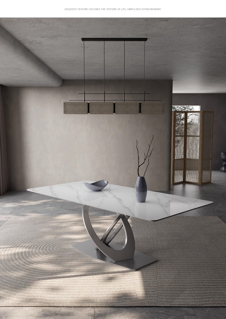 Taller casero minimalista italiano New Rock placa mesa de comedor y silla combinación de luz de lujo de alta gama brillante pequeño apartamento mesa de comedor rectangular