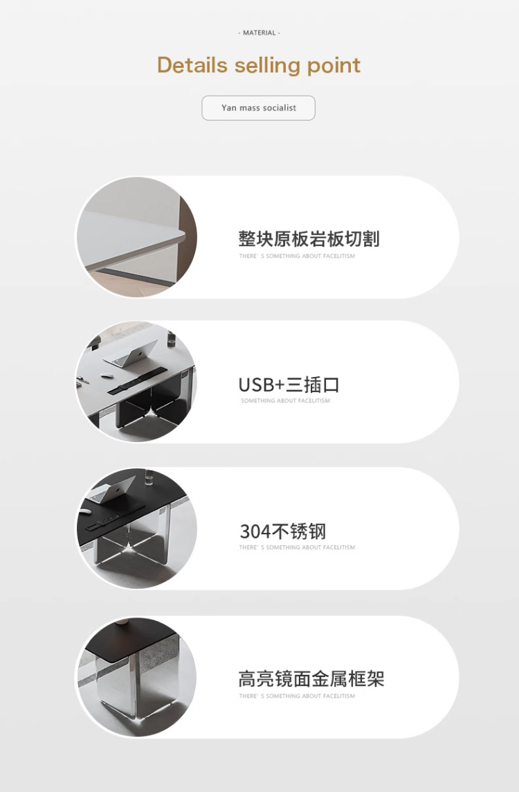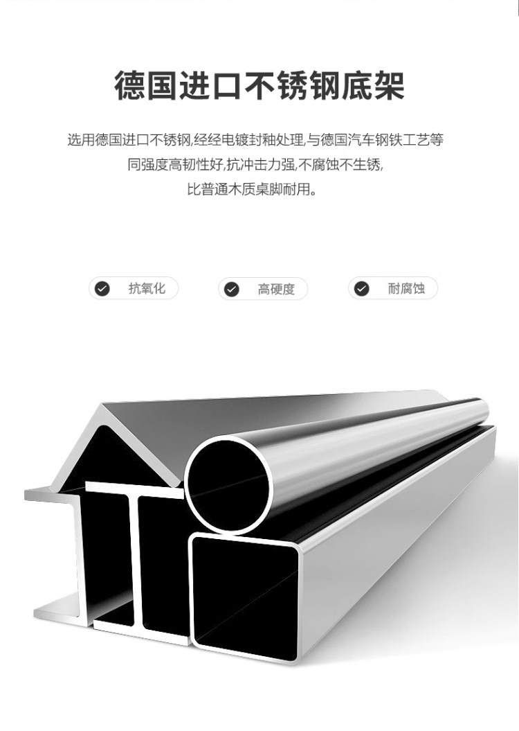 Mesa de comedor de placa de roca blanca pura [Base de acero inoxidable espejo]