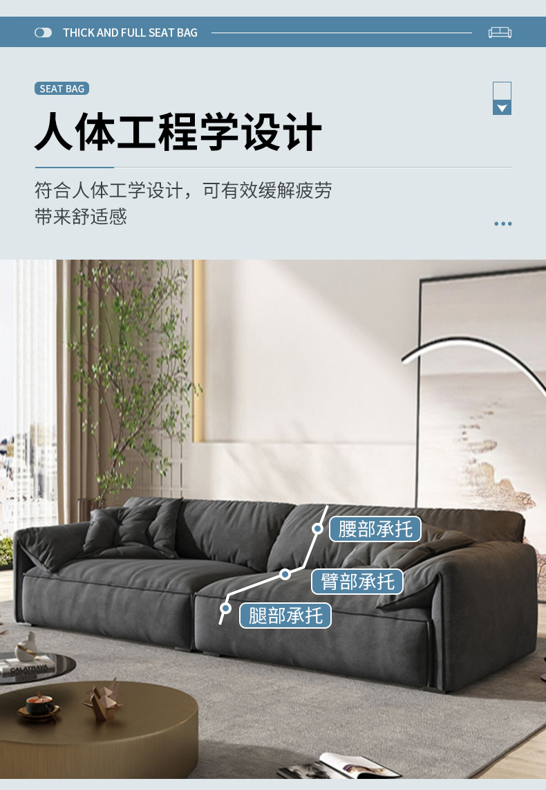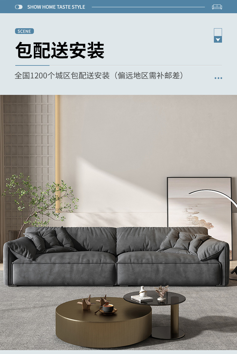 Elefante oreja tecnología tela sofá moderno minimalista Salón Italiano minimalista pequeño apartamento nórdico Internet celebridad fila recta tres personas