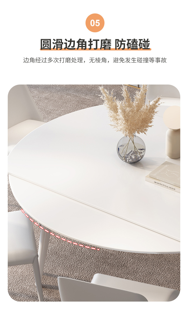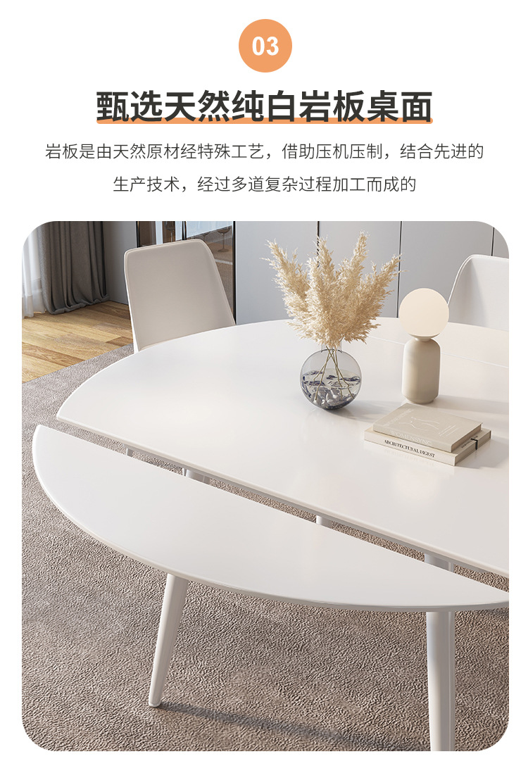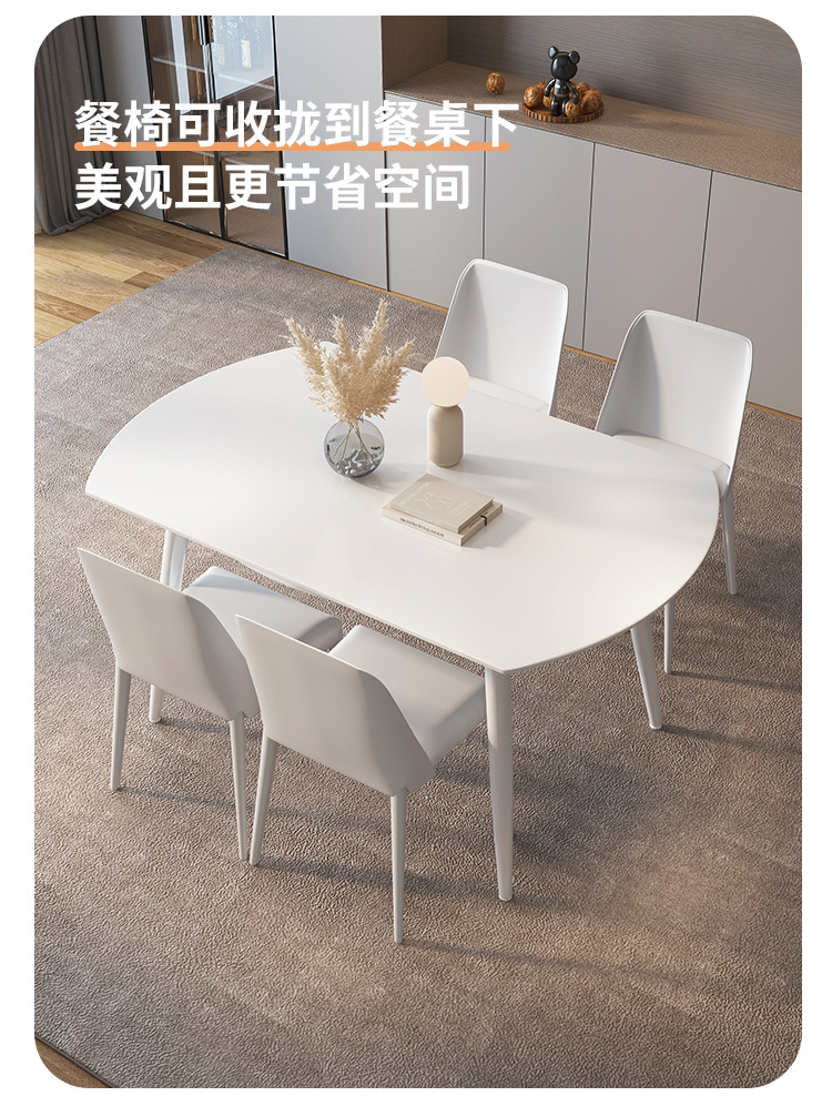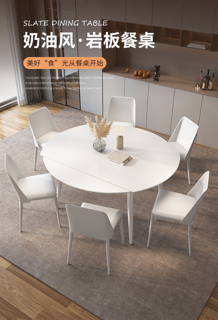 Mezcla de mesa redonda de tabla de roca blanca pura con viento crema plegable telescópico para sala de estar doméstica pequeña mesa de comedor y silla