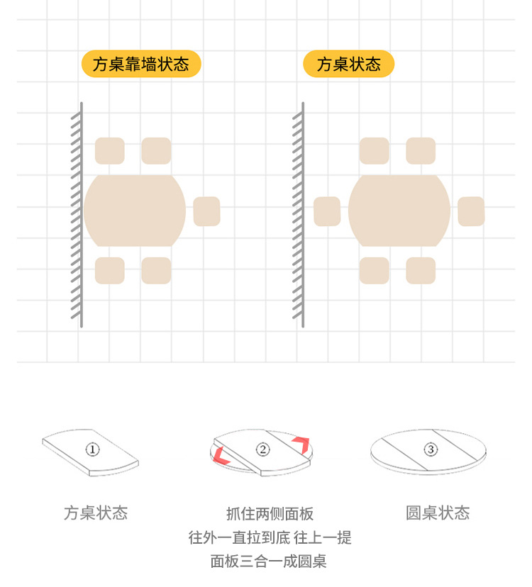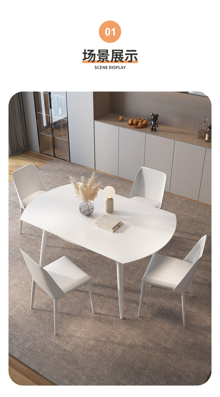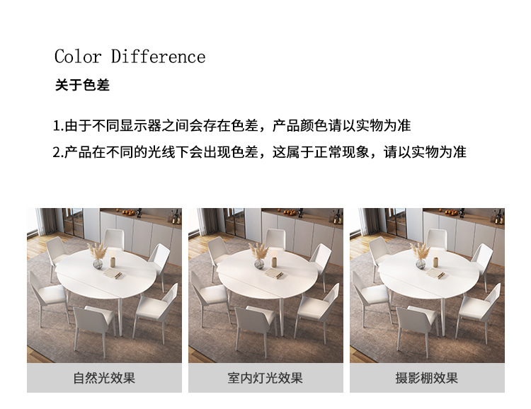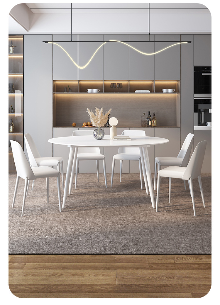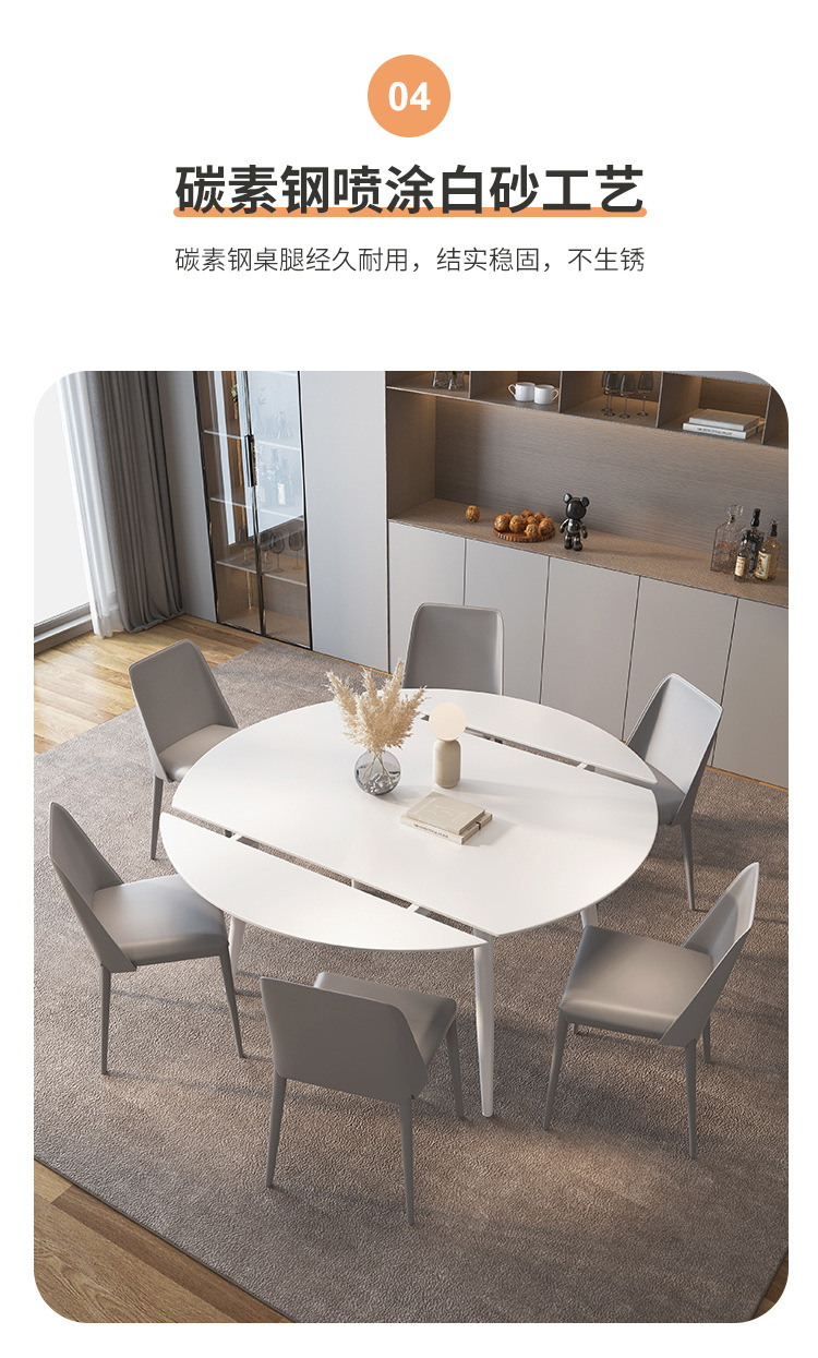 Mezcla de mesa redonda de tabla de roca blanca pura con viento crema plegable telescópico para sala de estar doméstica pequeña mesa de comedor y silla