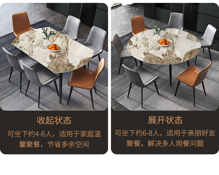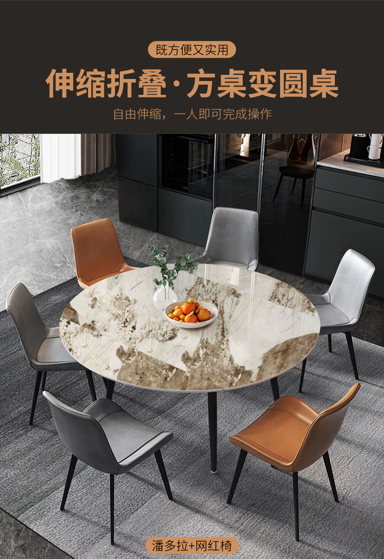 Luz de lujo Placa de roca mesa de comedor y silla combinación moderna simple mesa retráctil cuadrada redonda de doble uso nórdico hogar pequeño apartamento mesa de comedor