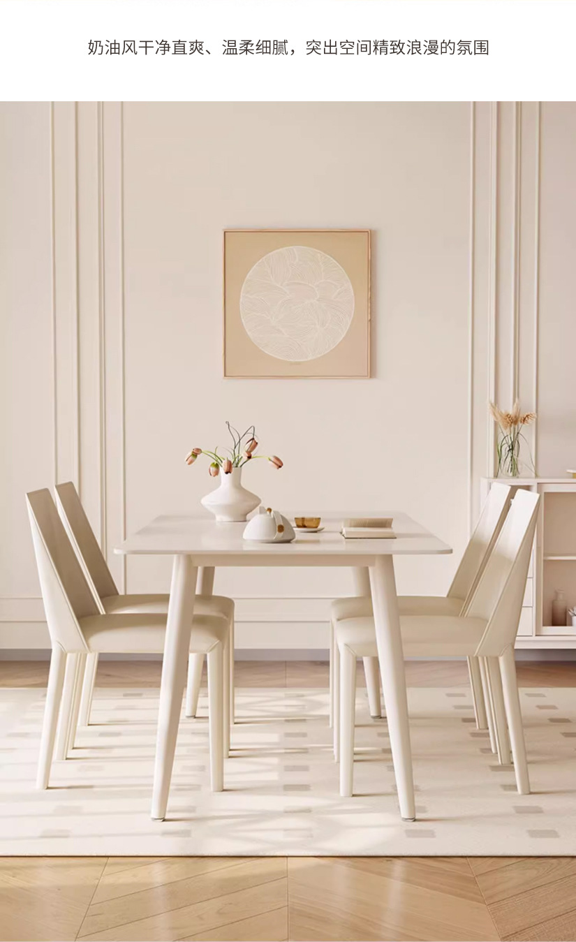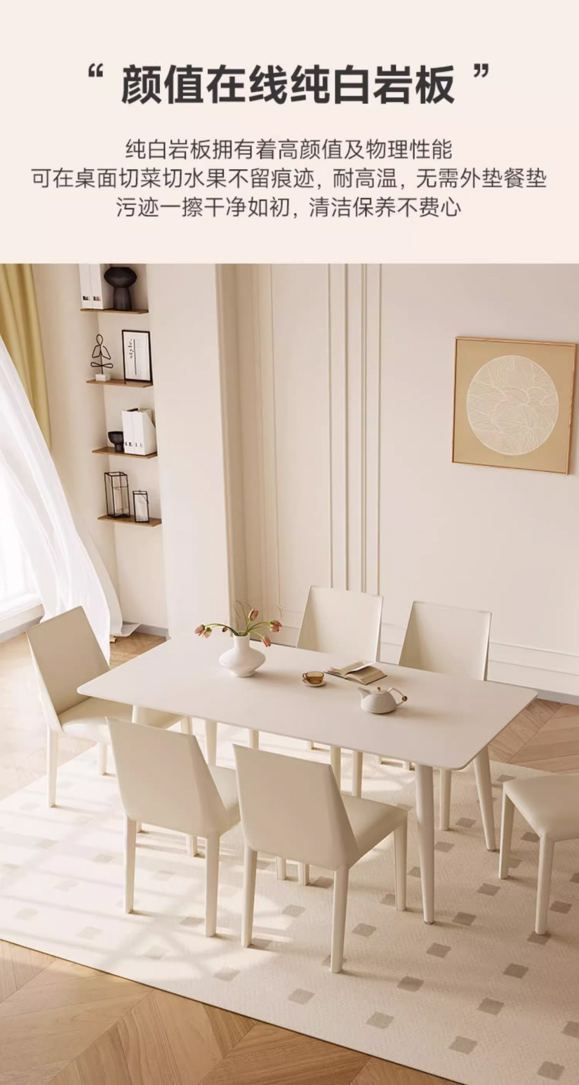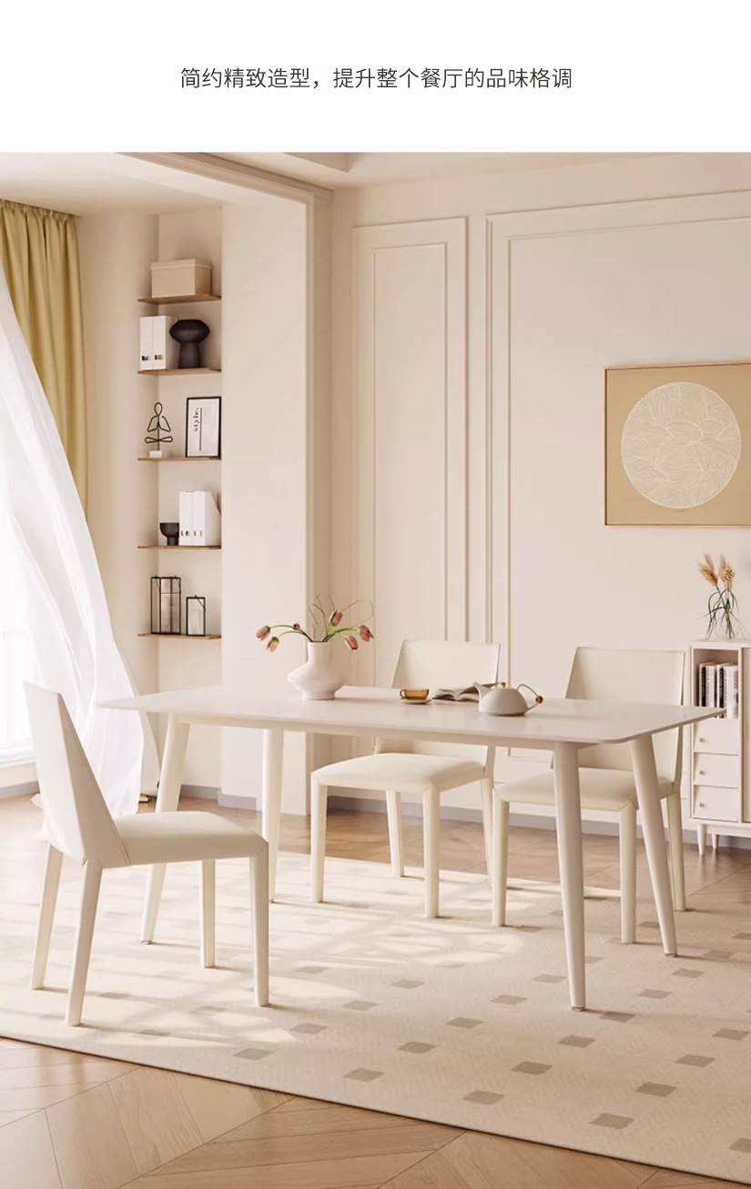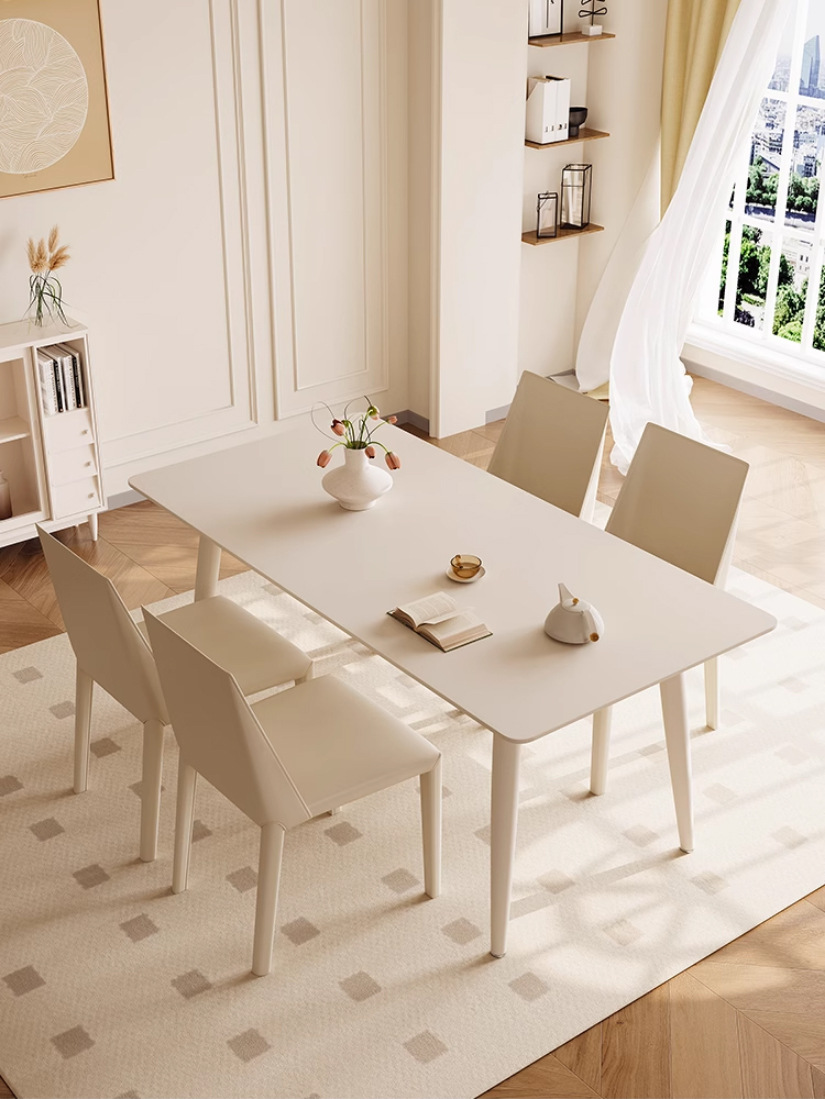 Mesa y silla de comedor de placa de roca de estilo crema blanco puro hogar pequeño apartamento mesa y silla moderna minimalista nórdica mesa de comedor rectangular