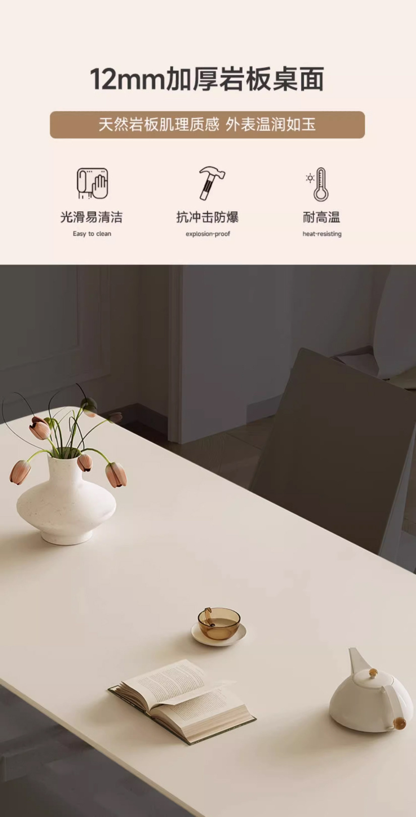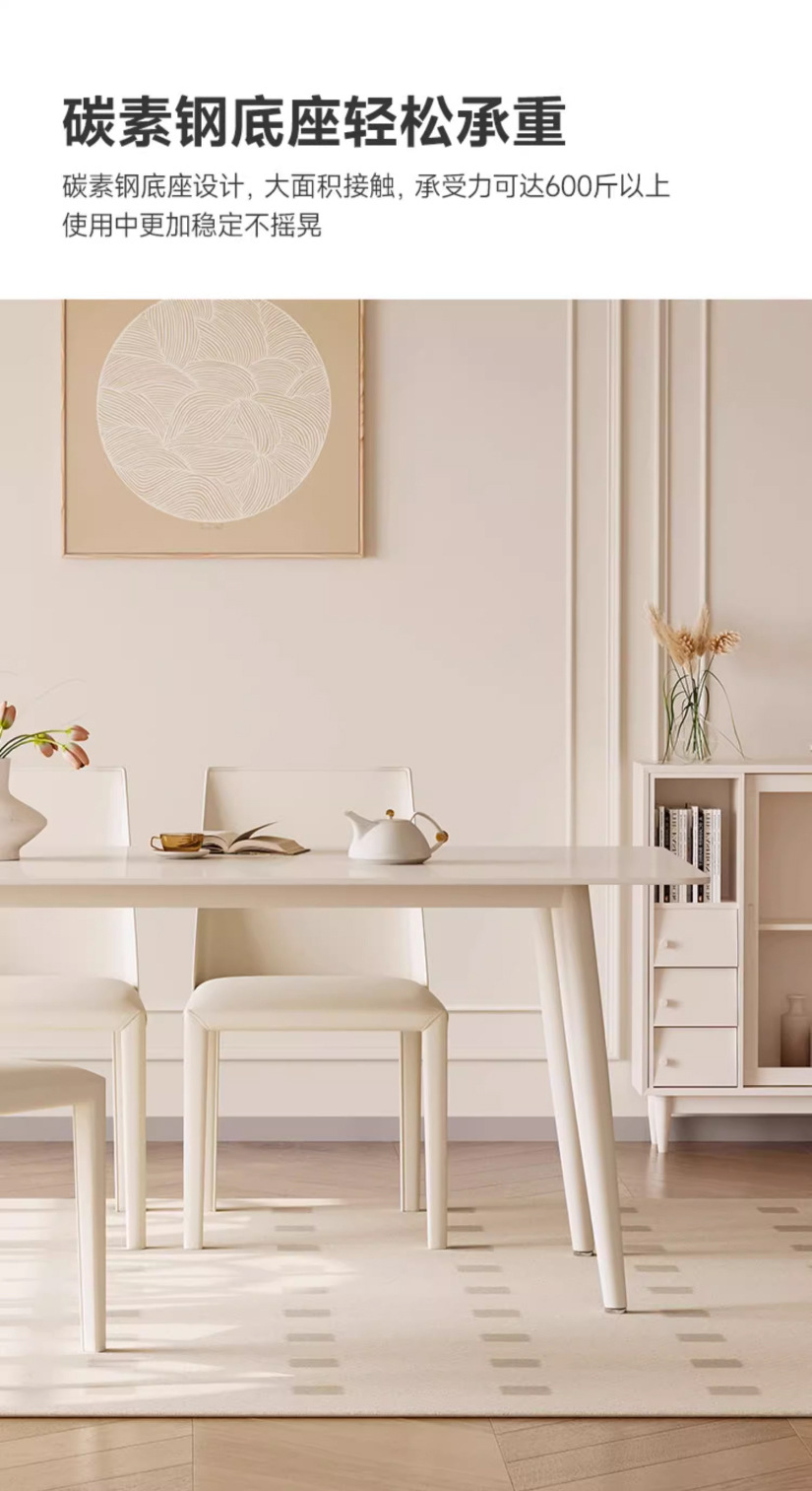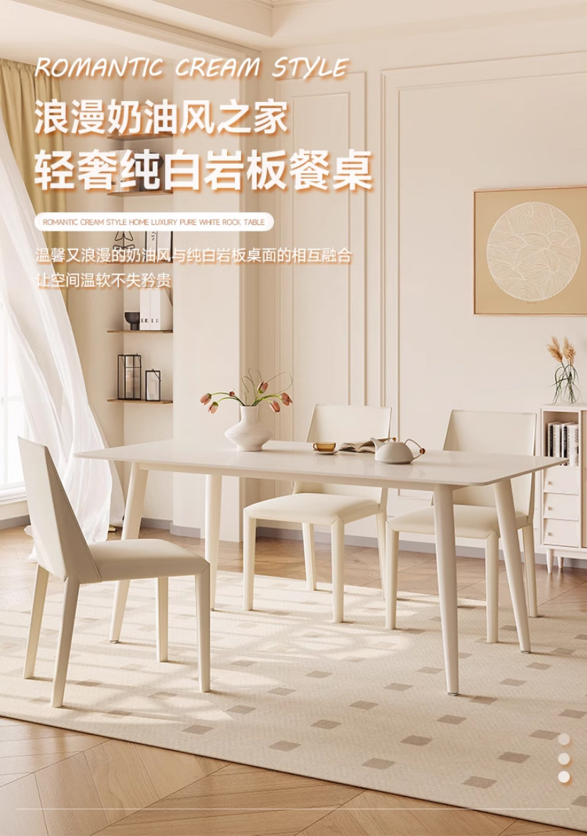 Mesa y silla de comedor de placa de roca de estilo crema blanco puro hogar pequeño apartamento mesa y silla moderna minimalista nórdica mesa de comedor rectangular