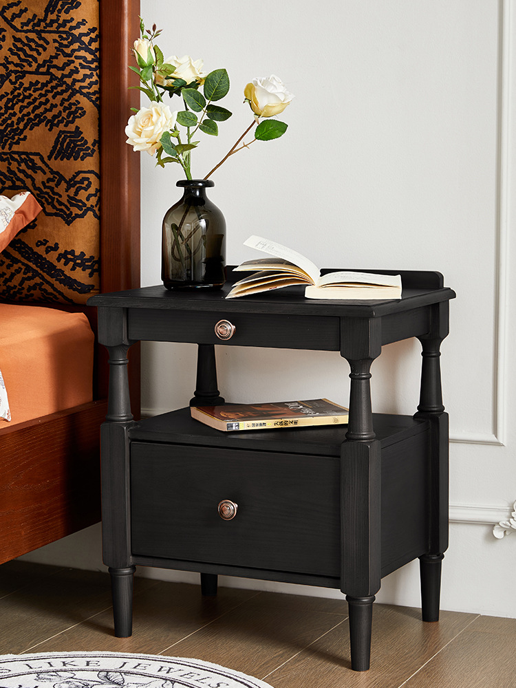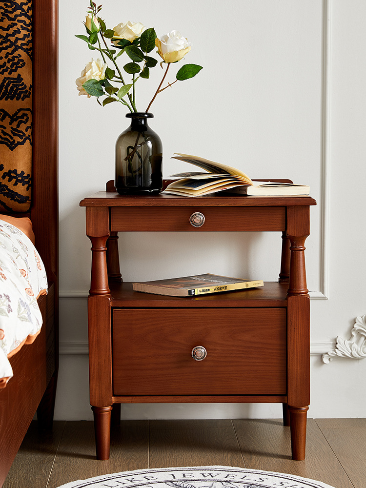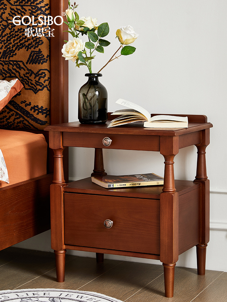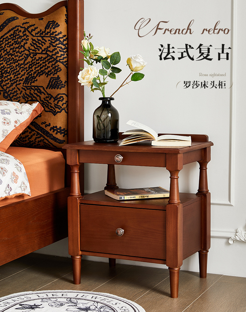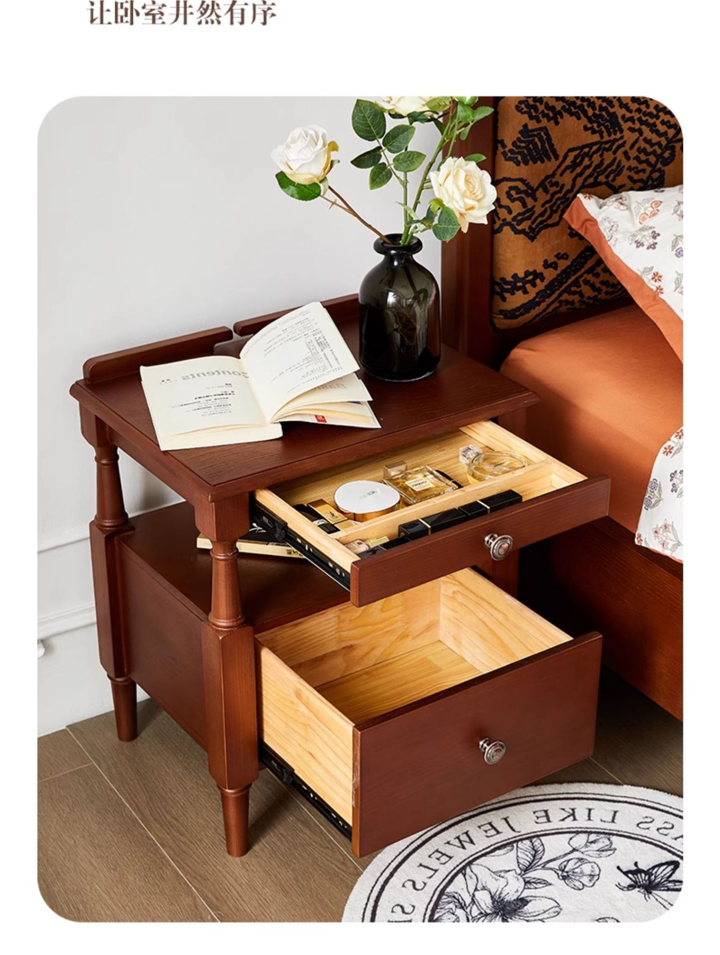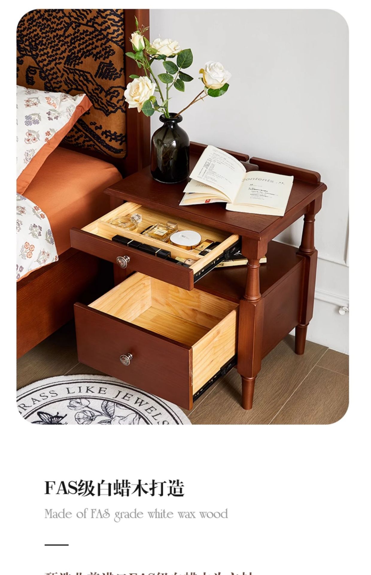 Danvance estilo francés retro mesa de cabecera de madera sólida de cera blanca dormitorio principal de madera sólida estilo medieval mesa de cabecera de cama