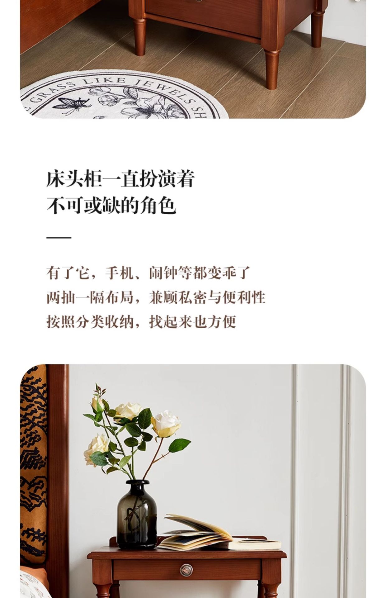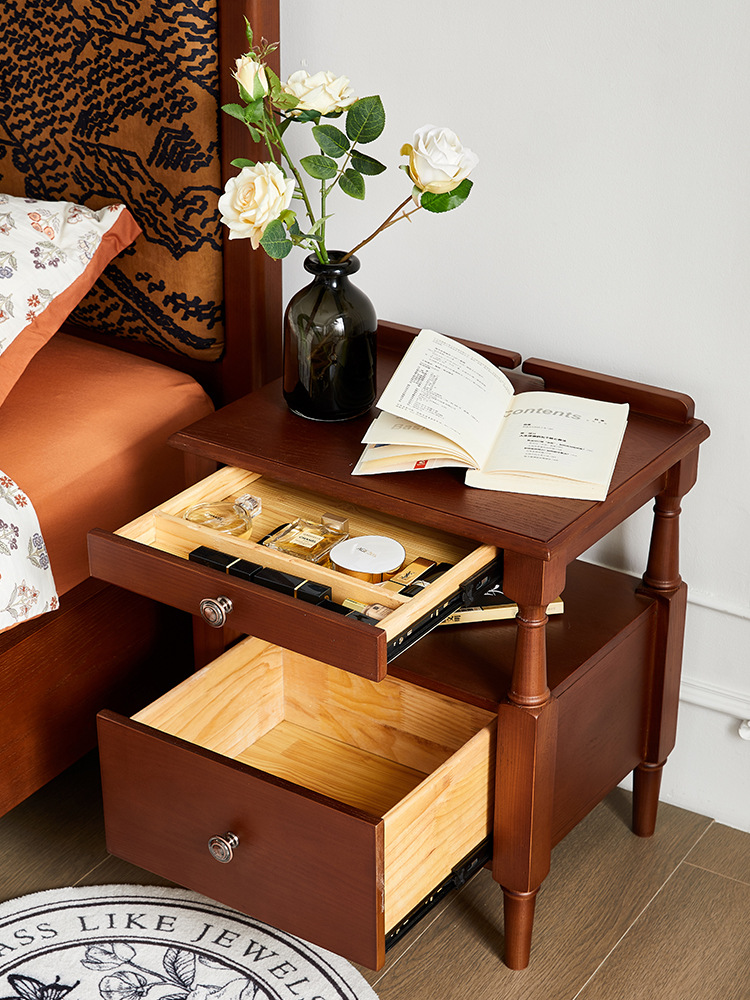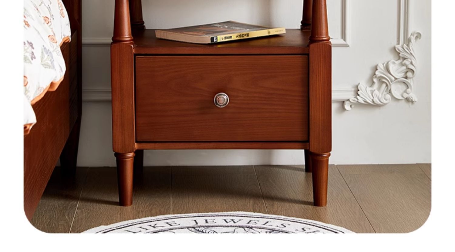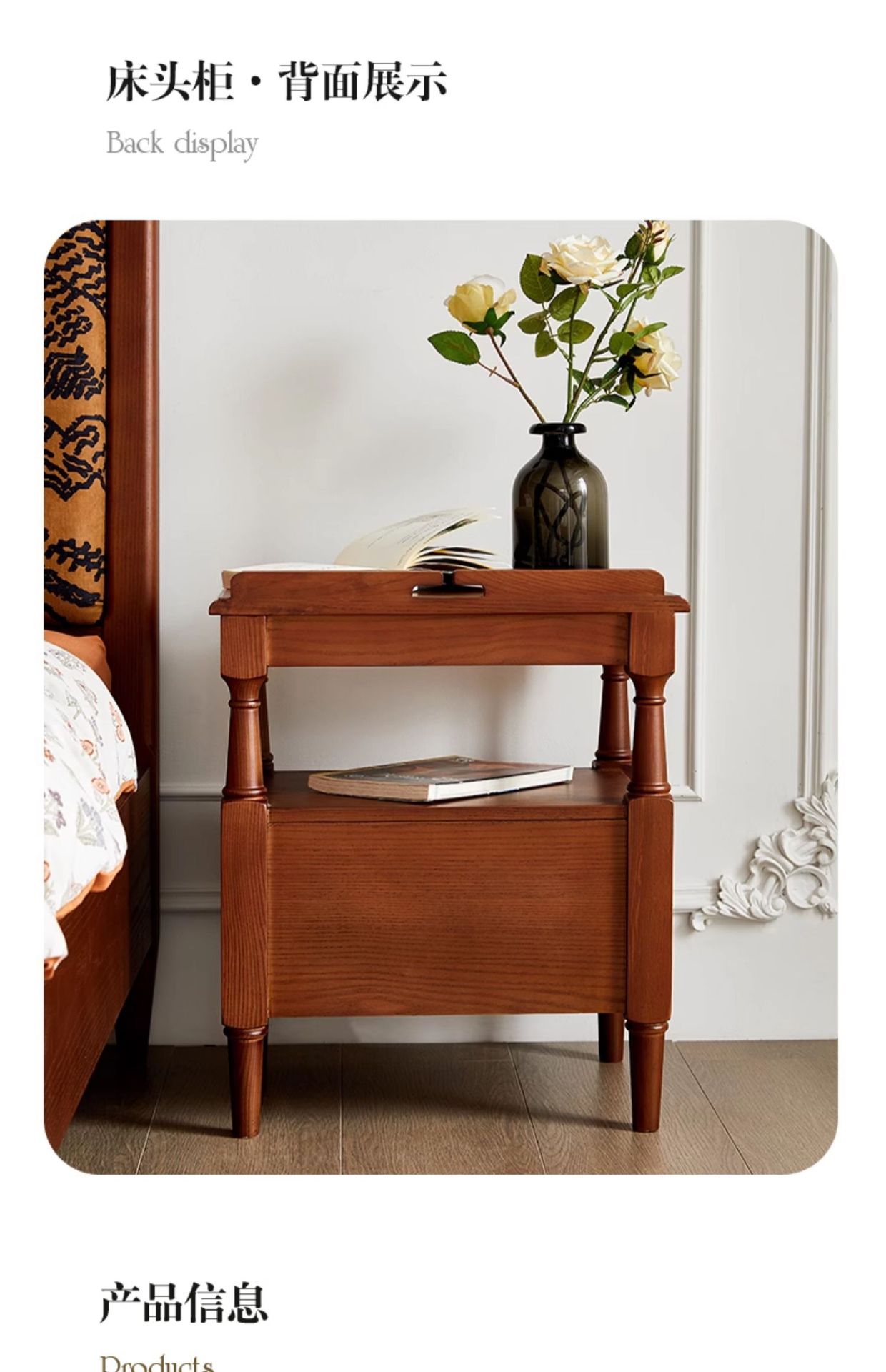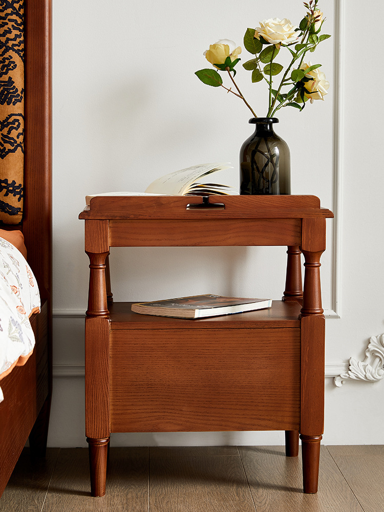 Danvance estilo francés retro mesa de cabecera de madera sólida de cera blanca dormitorio principal de madera sólida estilo medieval mesa de cabecera de cama