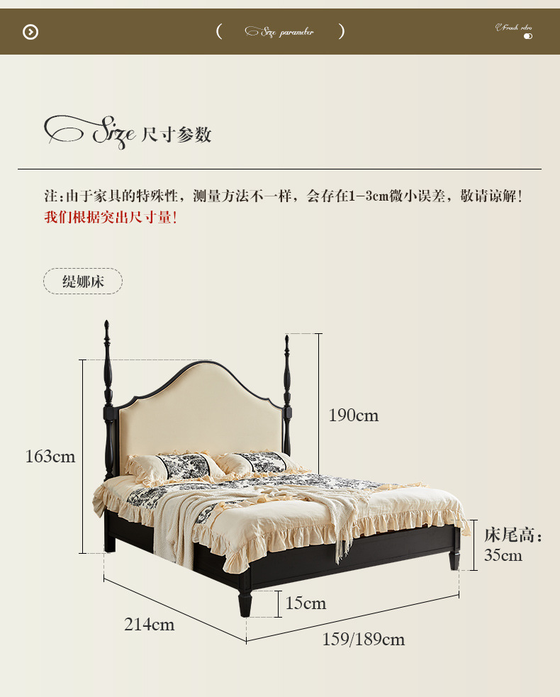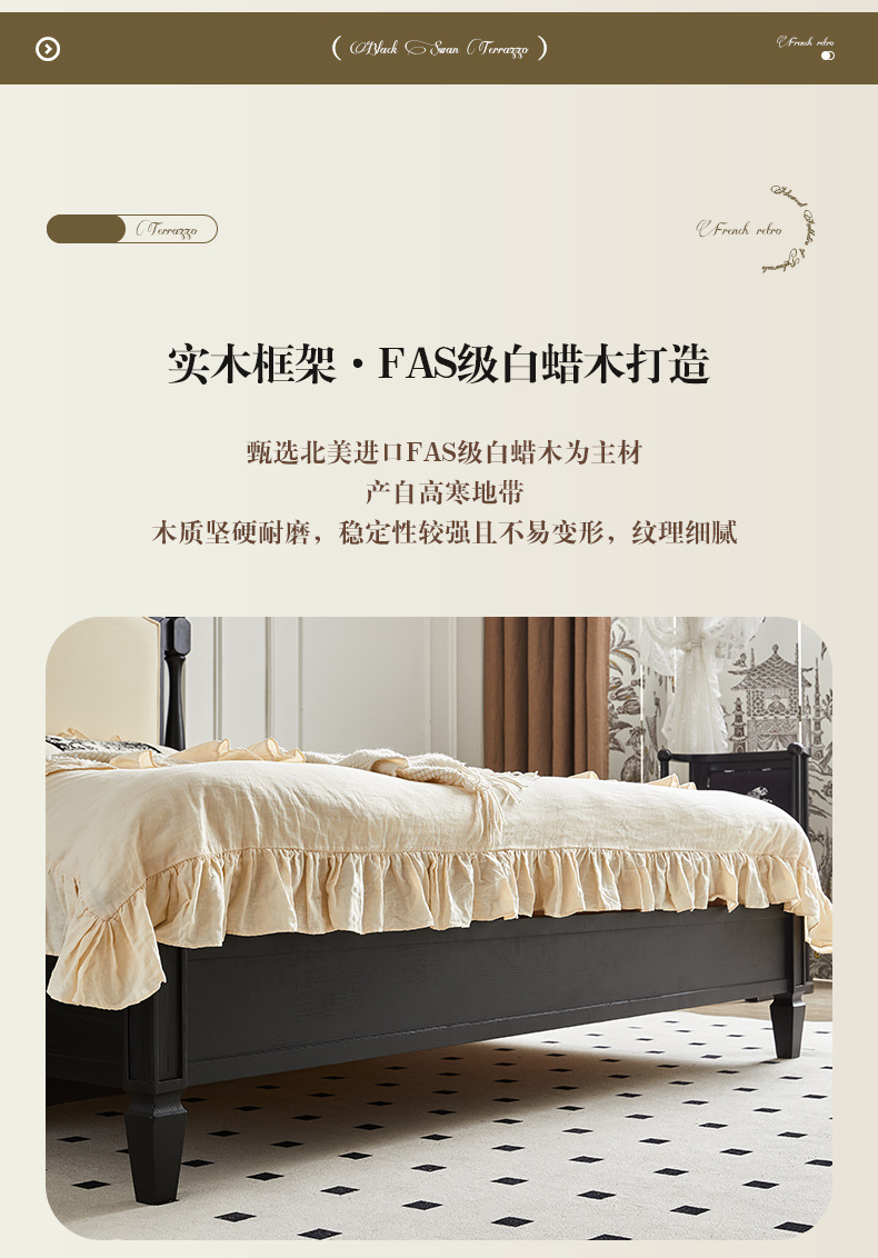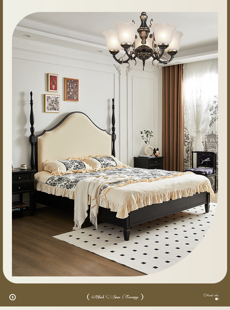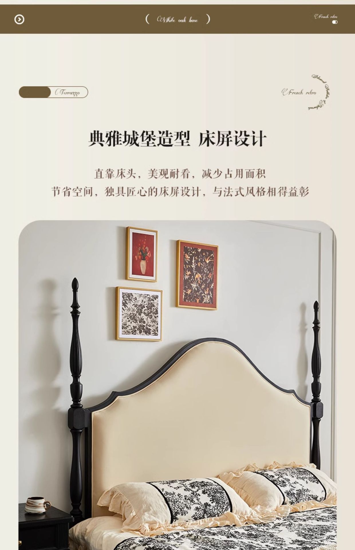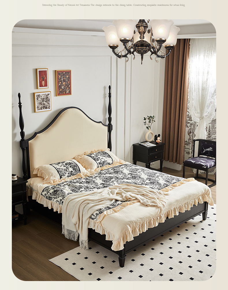 Danvas francesa cama de madera maciza cama retrógrada cama doble cama ligera francesa medieval dormitorio cama 1.8m
