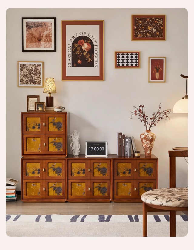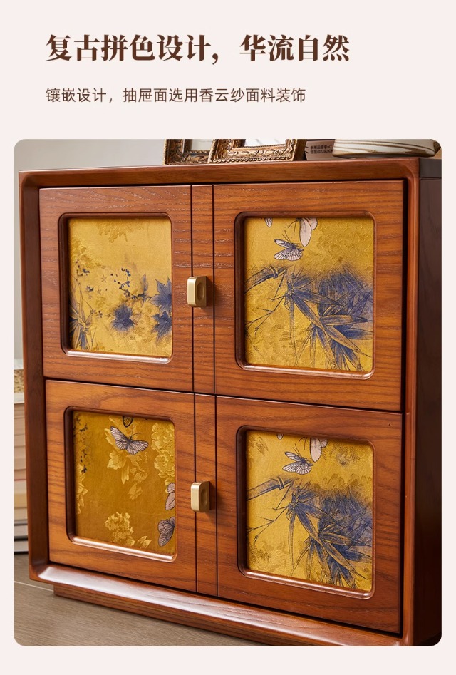 Gran cajón retro francés Sima, sala de estar, dormitorio, cajón contra la pared, armario de almacenamiento de madera maciza, armario de hilo Xiangyun