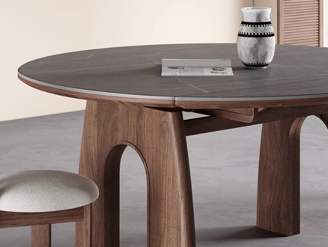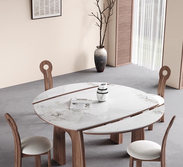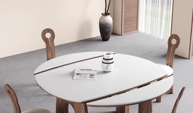 Φ1.2m mesa de comedor retráctil [madera de fresno]