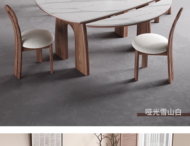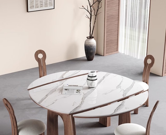 Mesas y sillas de comedor plegables de madera maciza de estilo antiguo, tablero de roca 2024, nuevo estilo americano, mesa redonda retráctil cuadrada variable, pequeño apartamento