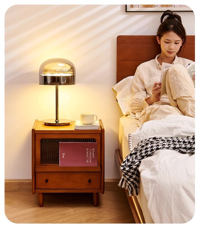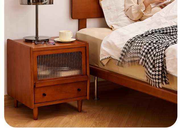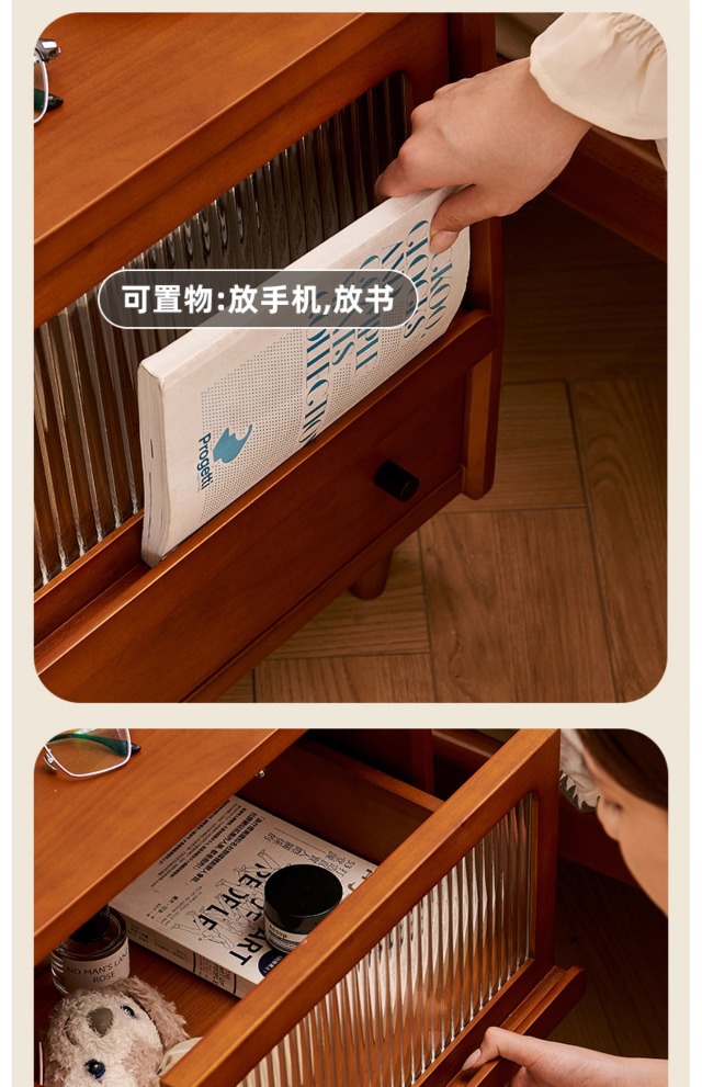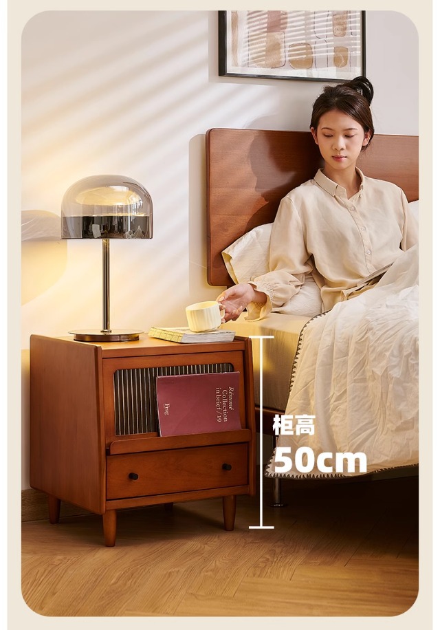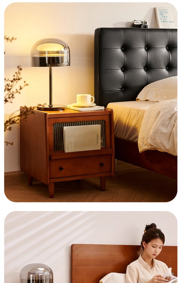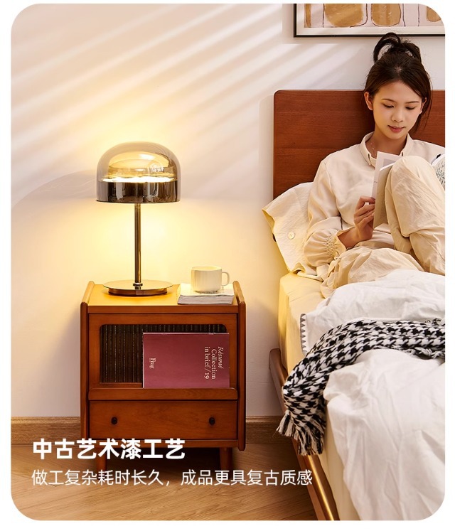 Mesita de noche de madera maciza retro, armario de almacenamiento simple para dormitorio, armario de almacenamiento pequeño de mediana edad para el hogar, armario de almacenamiento junto a la cama