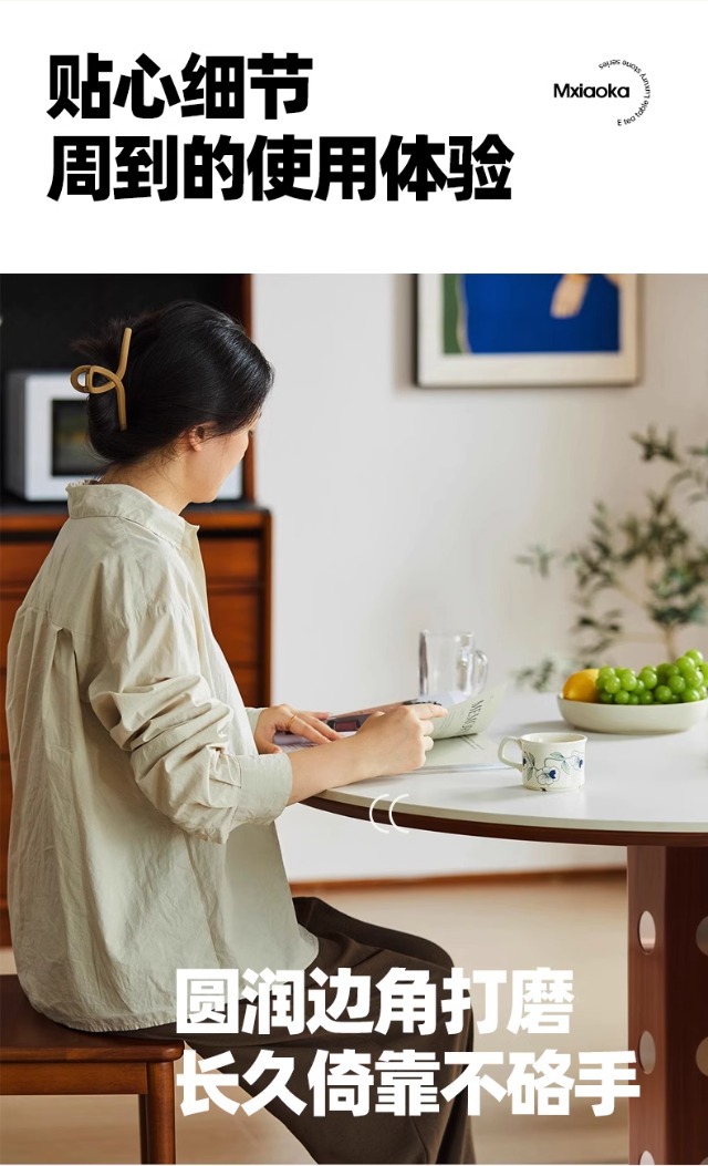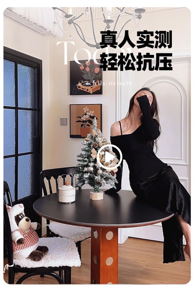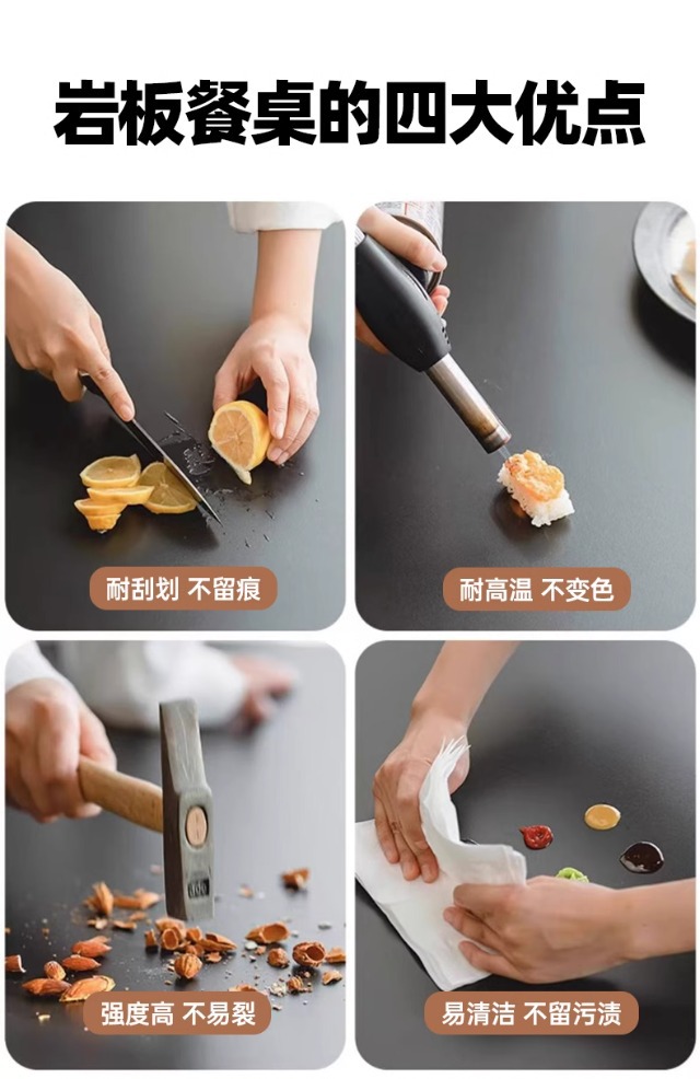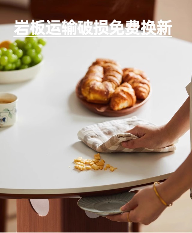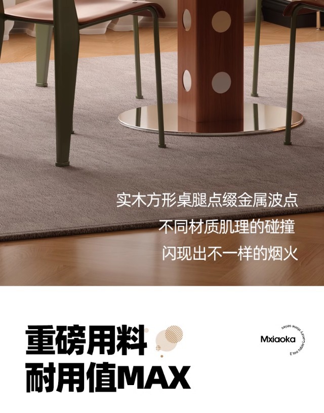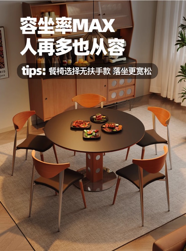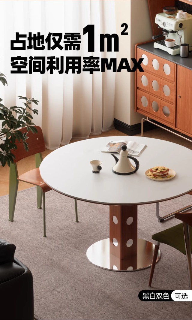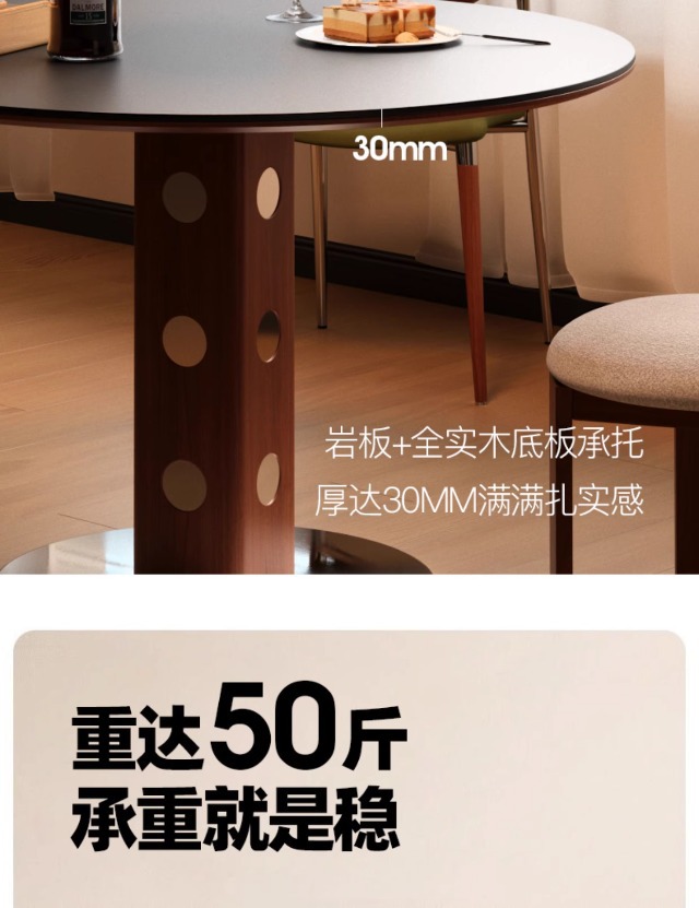 Mesa redonda de la placa de roca de estilo medieval, mesa de comedor redonda de piernas metálicas retro, mesa de comedor de madera sólida de Bauhaus nórdica.
