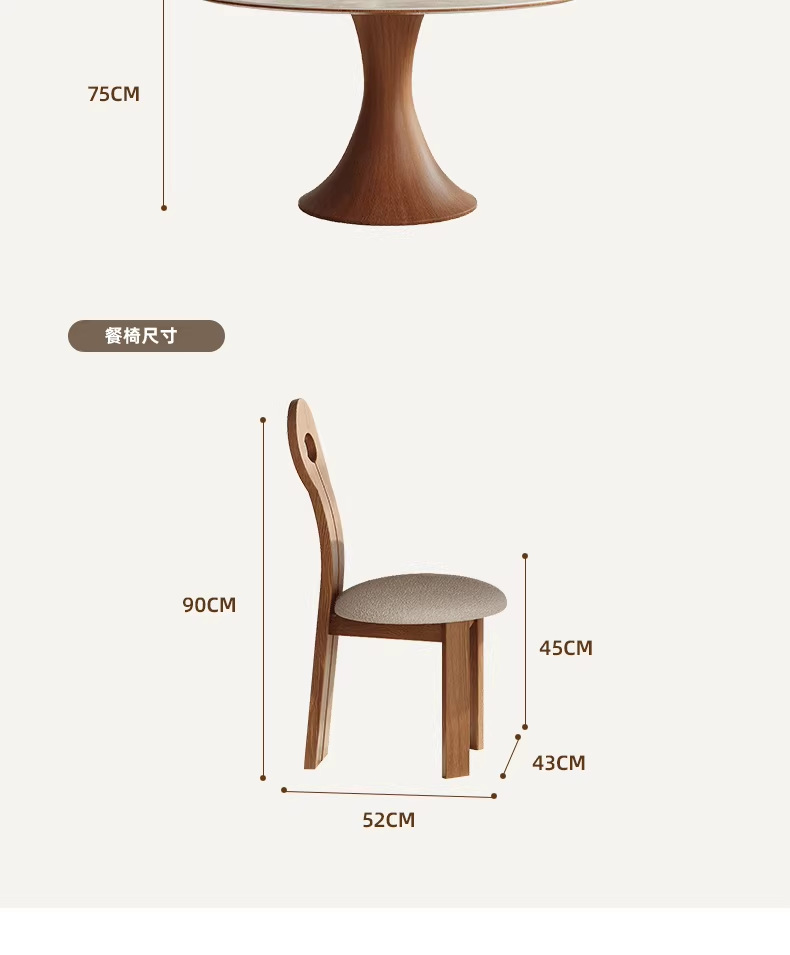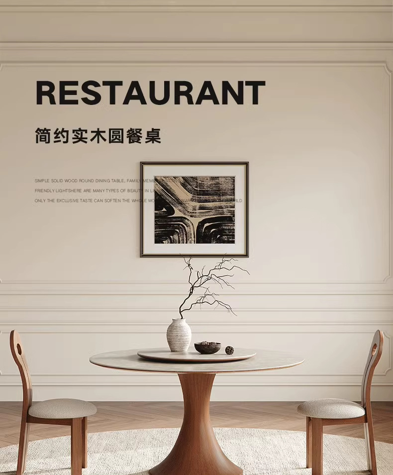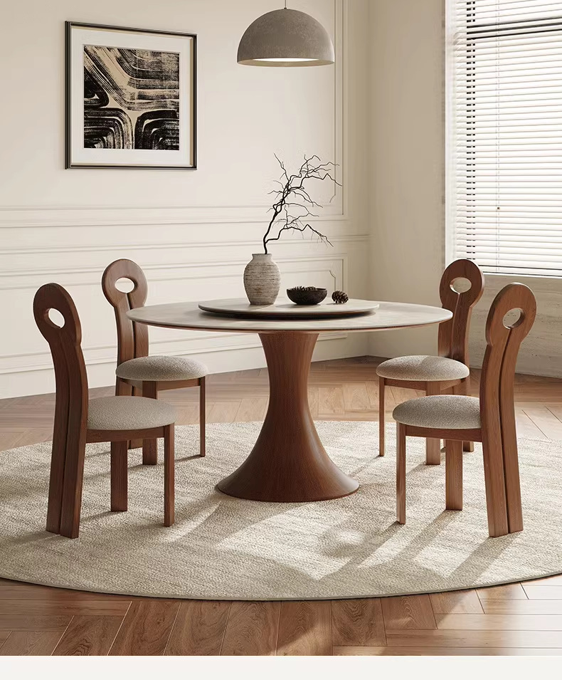 Mesa de comedor de madera sólida nórdica estilo medieval francés, mesa de comedor redonda doméstica, combinación de mesa y silla de color nuez