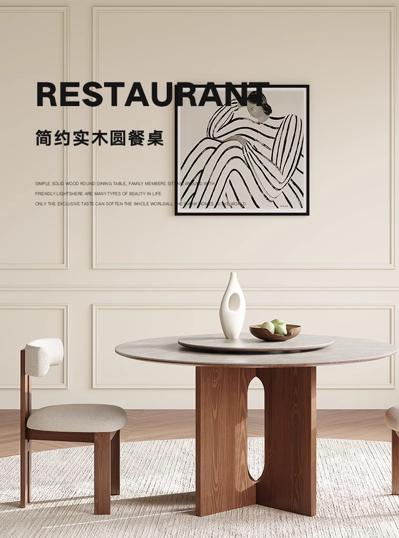 Mesa de comedor de madera maciza redonda de estilo medio, sala de estar 2024 nuevo estilo estilo medio antiguo, retro americano, mesa redonda minimalista moderna francesa