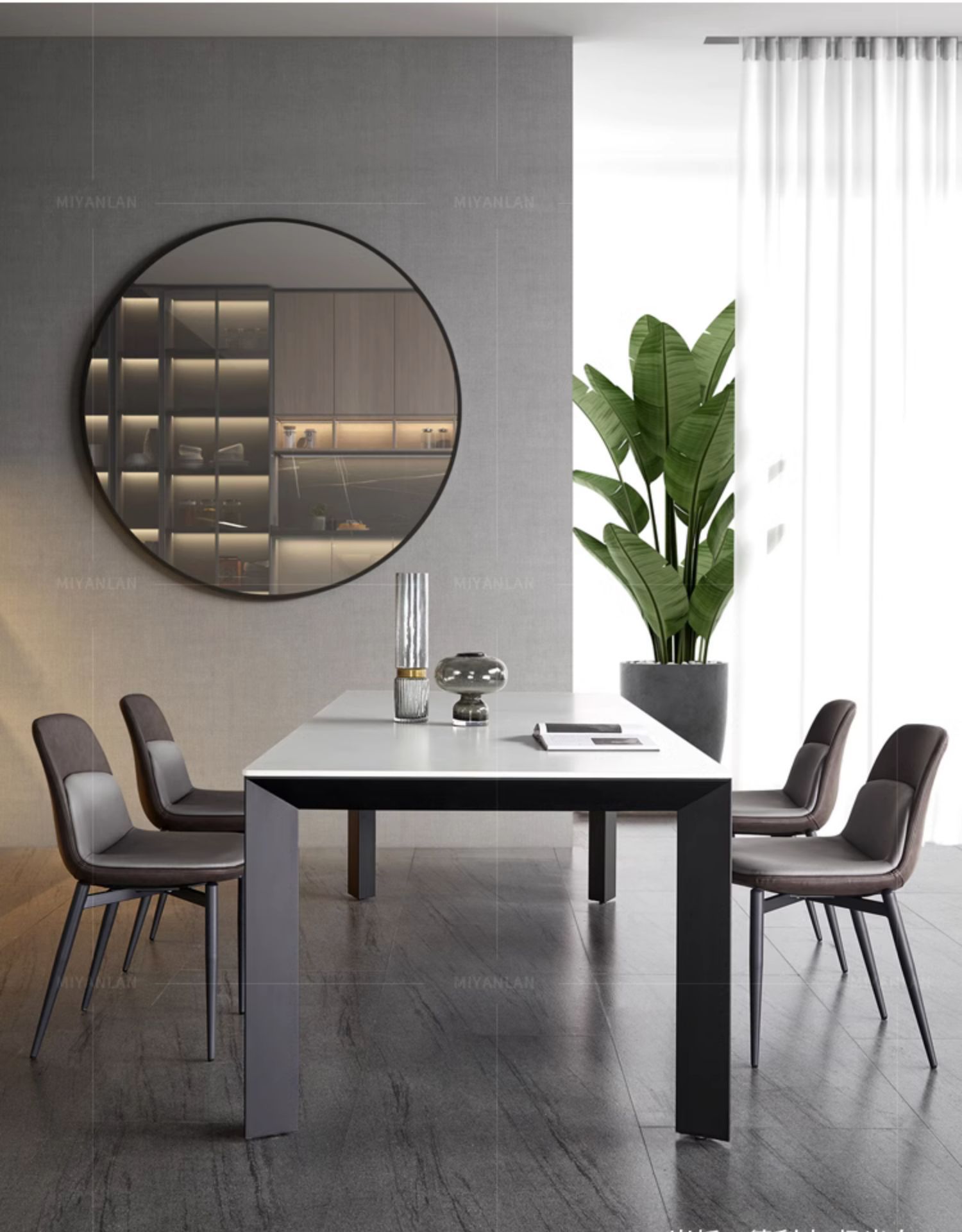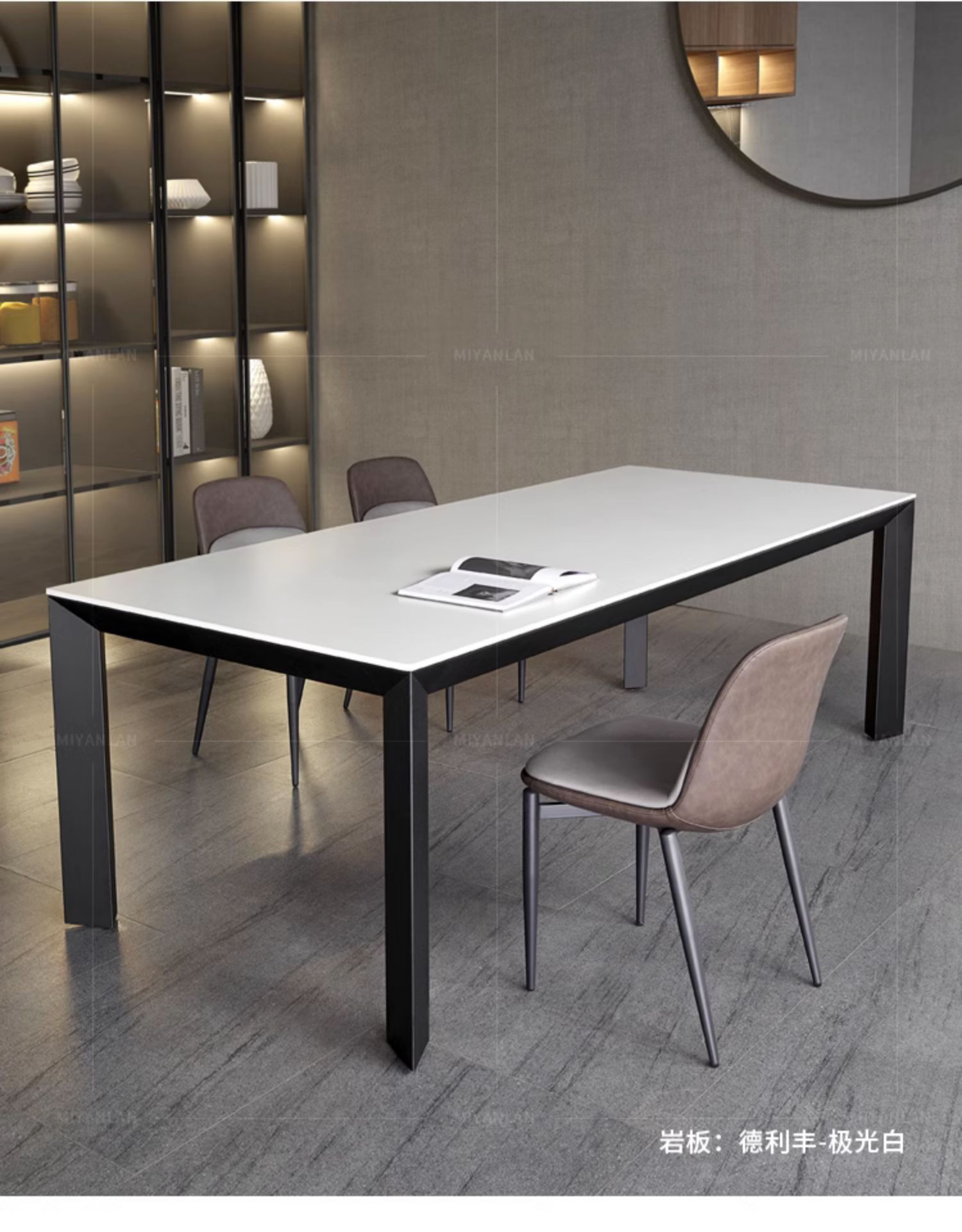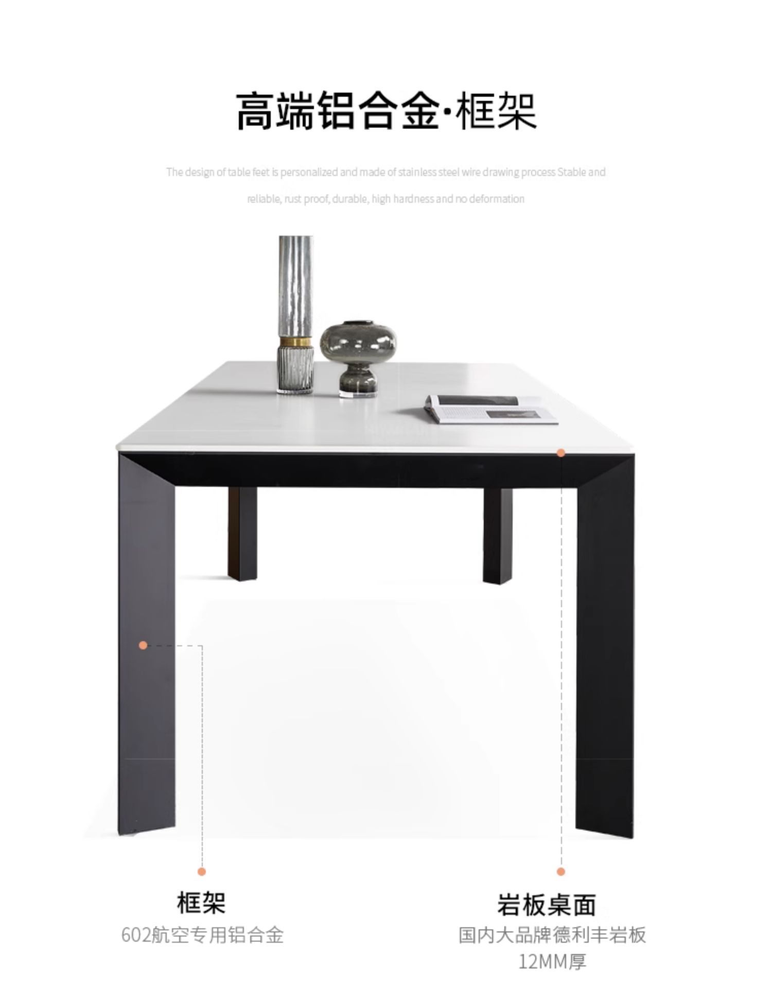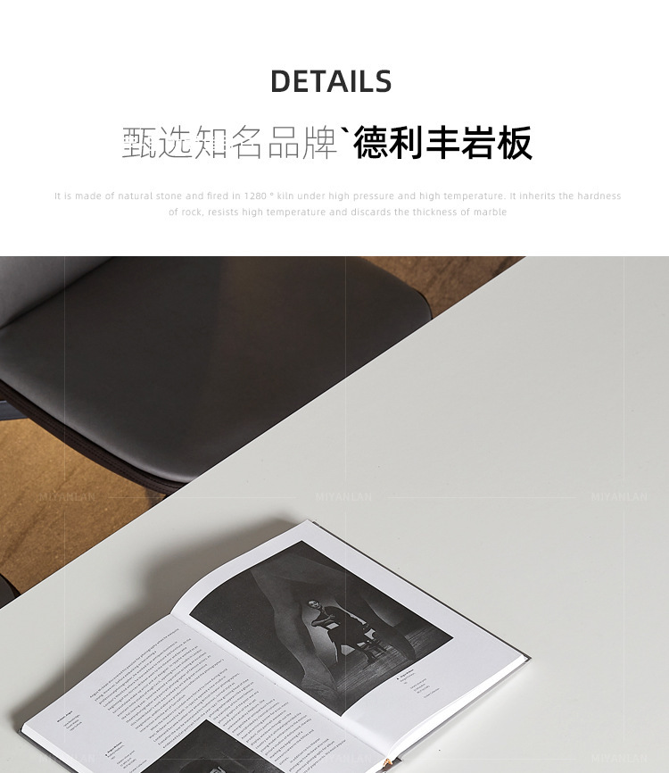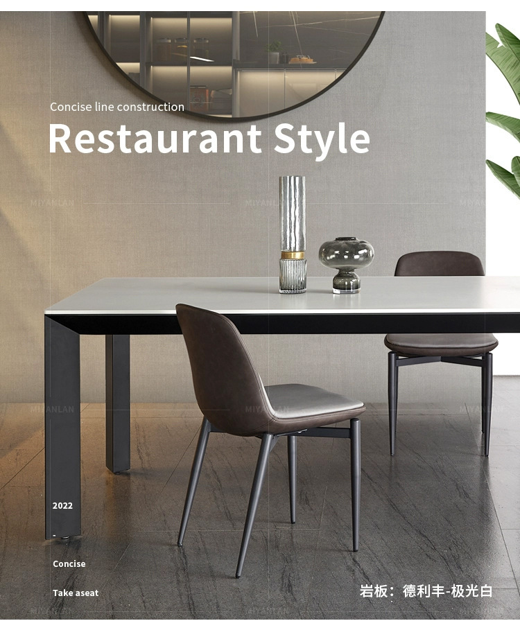 Mesa de comedor de tabla de roca gruesa de Delifeng, combinación de mesa y silla de comedor rectangular de lujo moderno y pequeño tipo de casa minimalista italiana