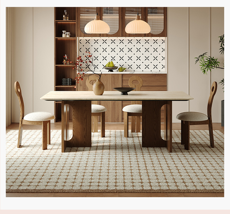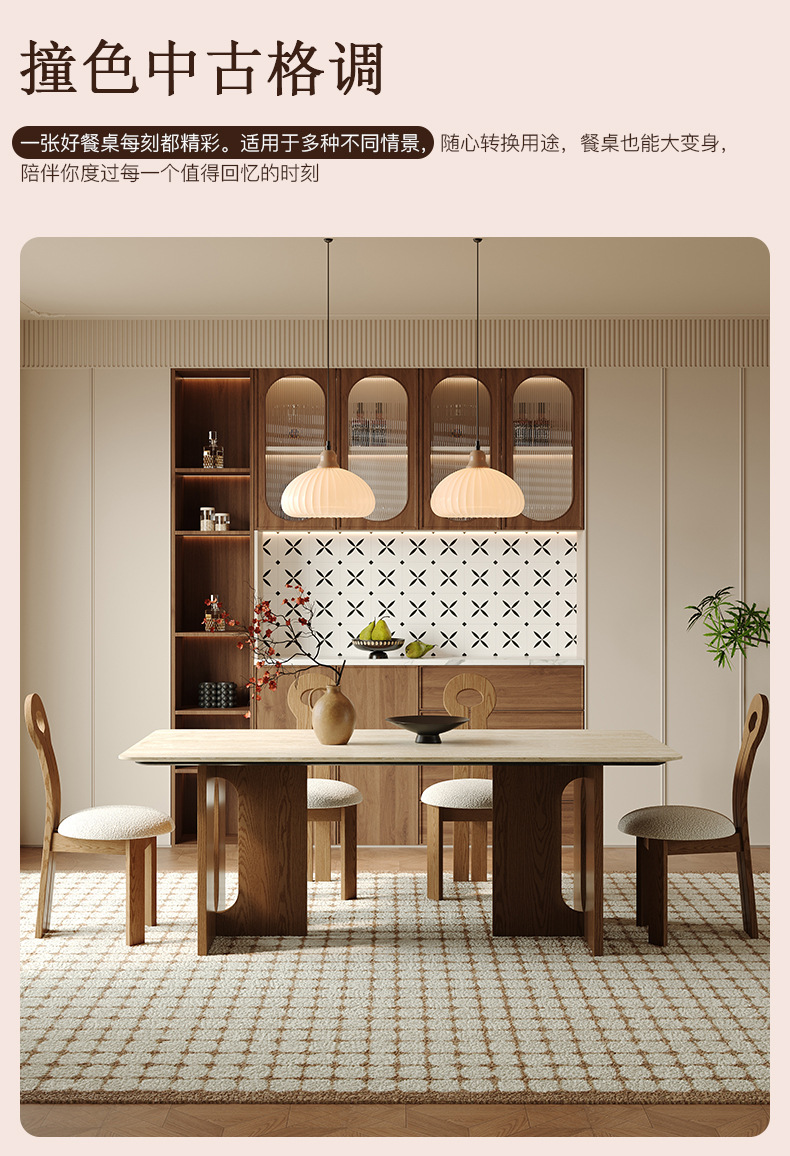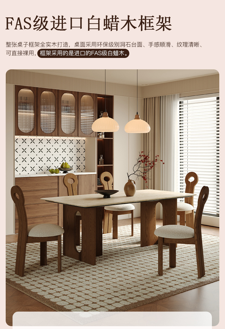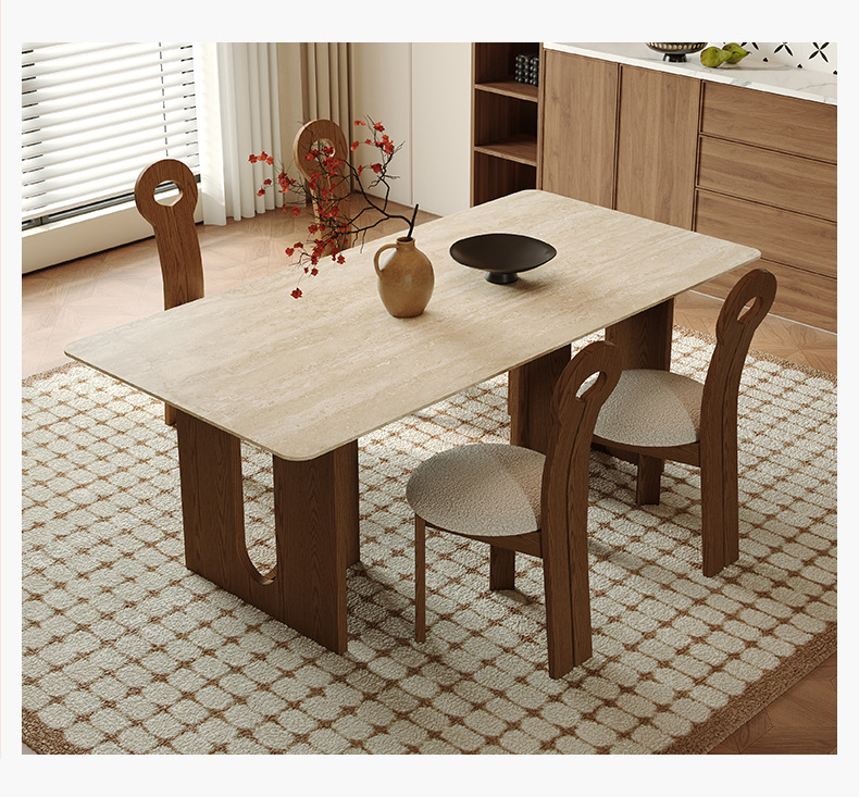 Danfans túnel de viento medieval piedra tabla mesa de comedor combinación de silla de madera de cera blanca viento silencioso rectangular retro 2024 nuevo