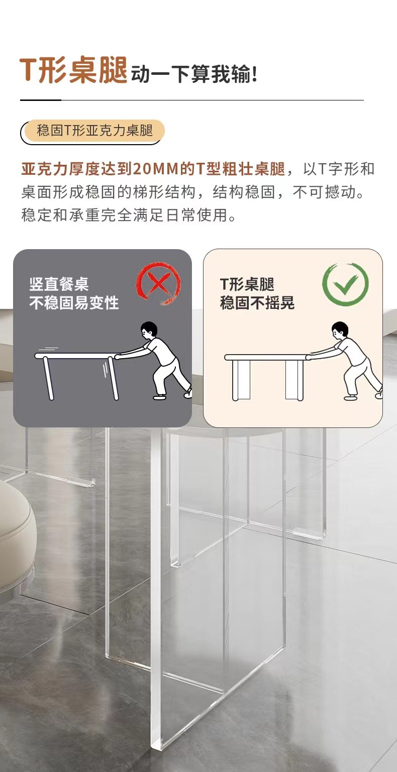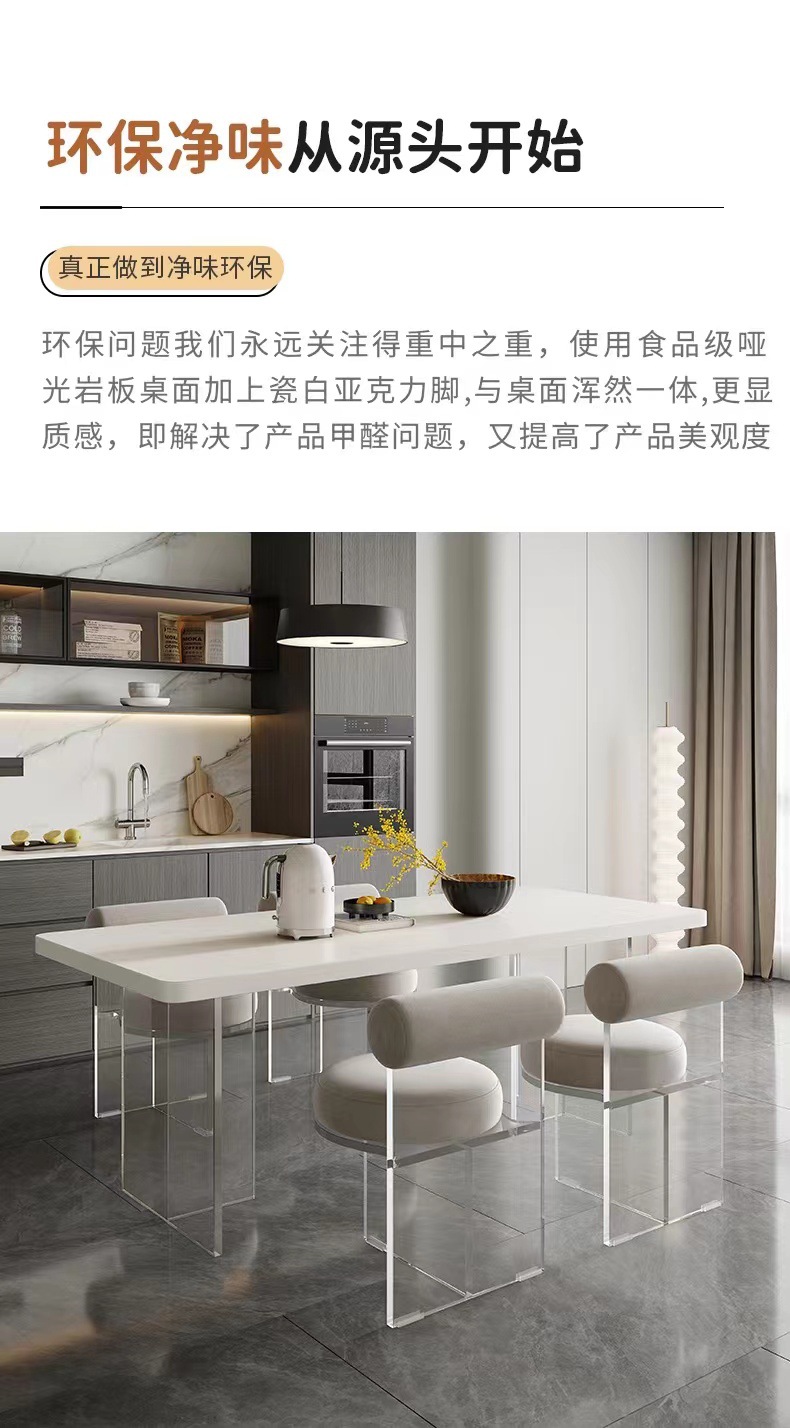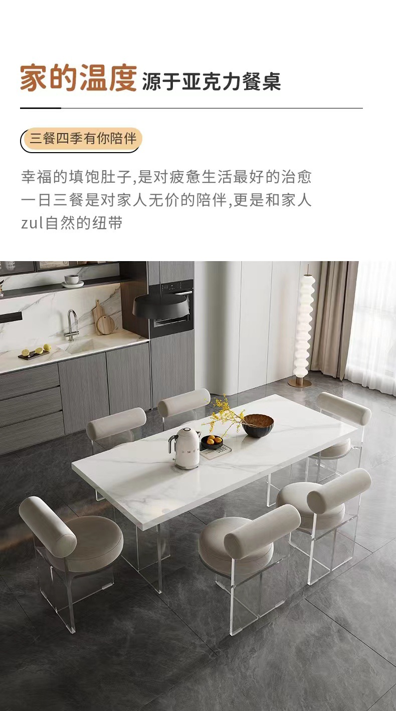 Luz moderna de lujo acrílico suspensión mesa de comedor y silla combinación inferior colgante redondeado blanco mesa de comedor hogar pequeño apartamento Mesa transparente