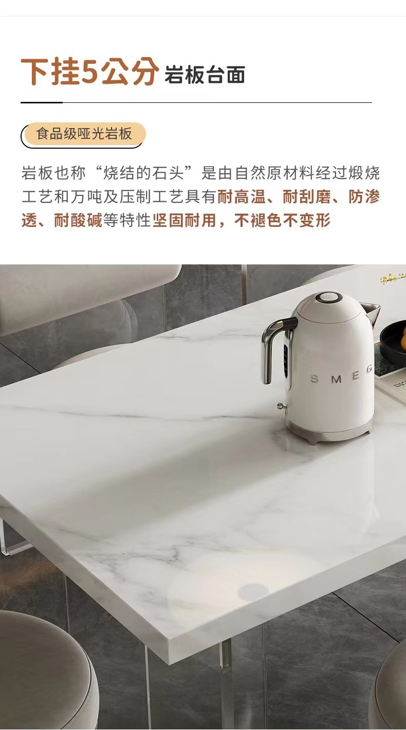 Placa de roca blanca + acrílico transparente de 20mm de espesor