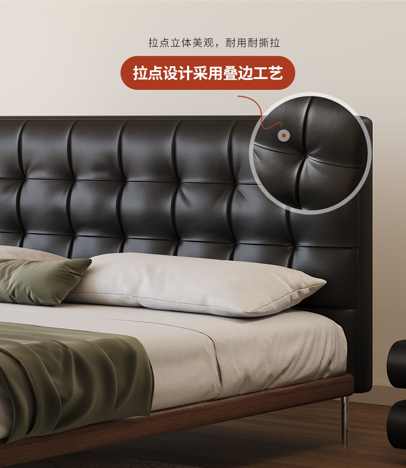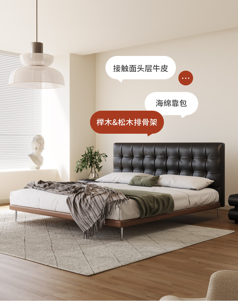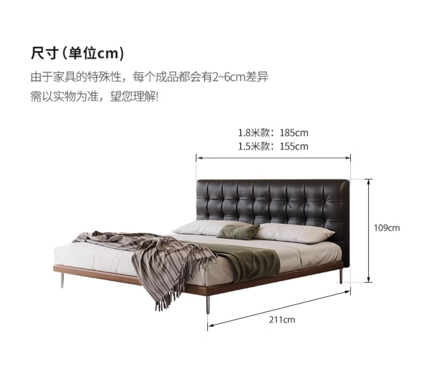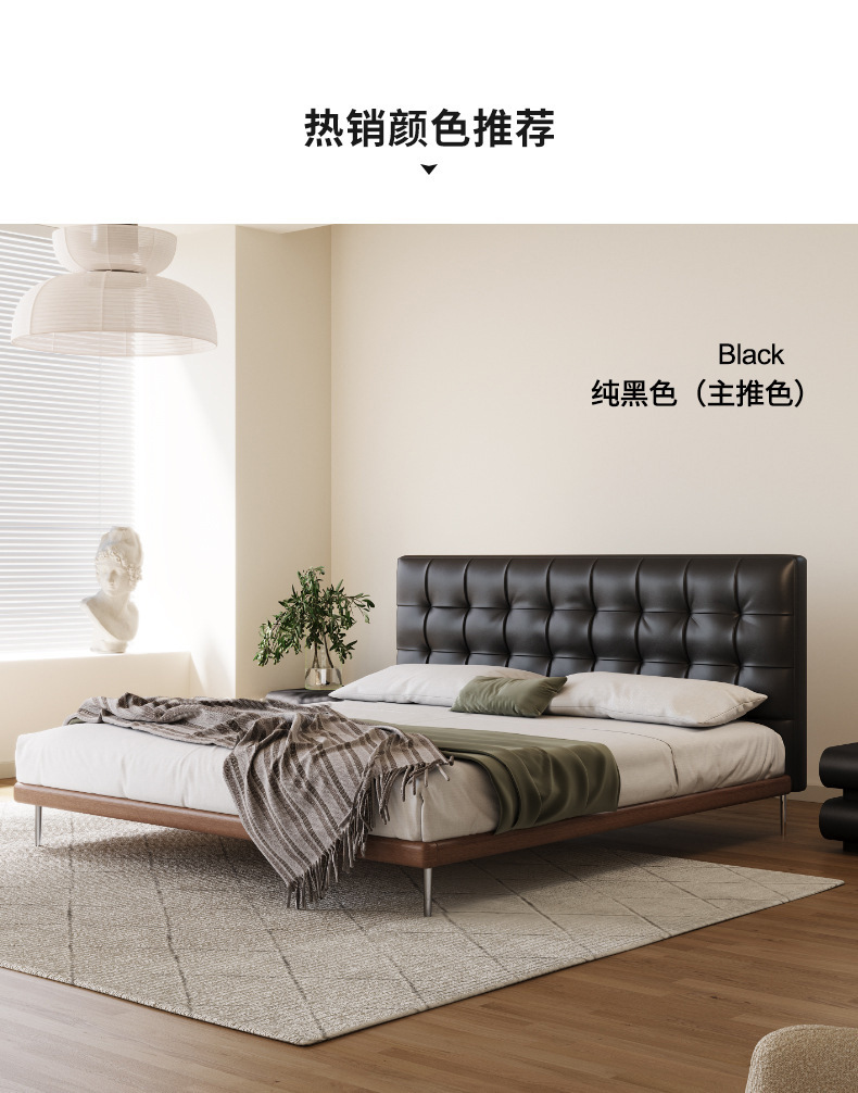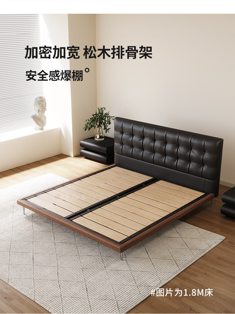 Danvas Swagger cama de cuero minimalista italiana moderna simple estilo medieval negro cama principal delgada cama de cabeza