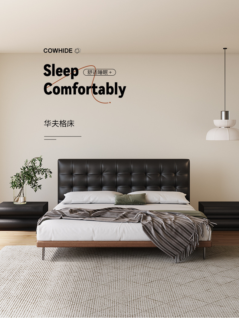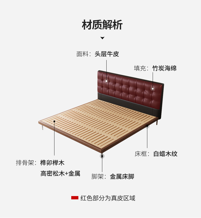 Piel de vaca con capa de cabeza de caída [esqueleto de alta densidad de 1,2 cm pavimentado] cama única