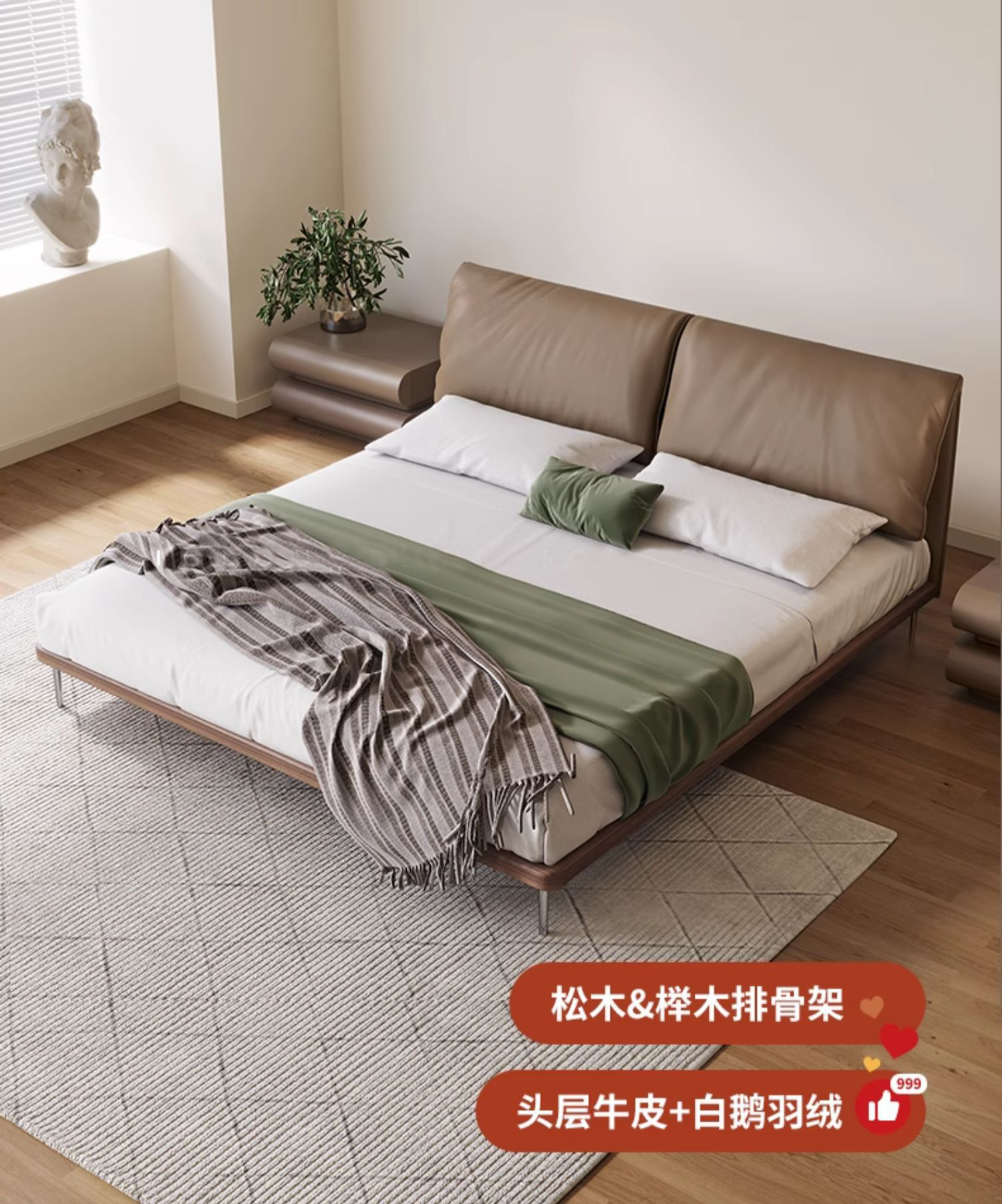 Piel de vaca con capa de cabeza de caída [esqueleto de alta densidad de 1,2 cm pavimentado] cama única