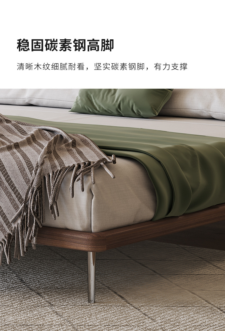 Cama de cuero con orejas de elefante, cama doble simple italiana, cama de madera de haya retro, cama moderna y simple.