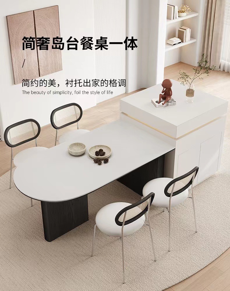 Mesa de península de madera maciza mesa de comedor integrado hogar pequeño apartamento moderno simple madera maciza ovalada de alta gama placa de roca mesa de comedor