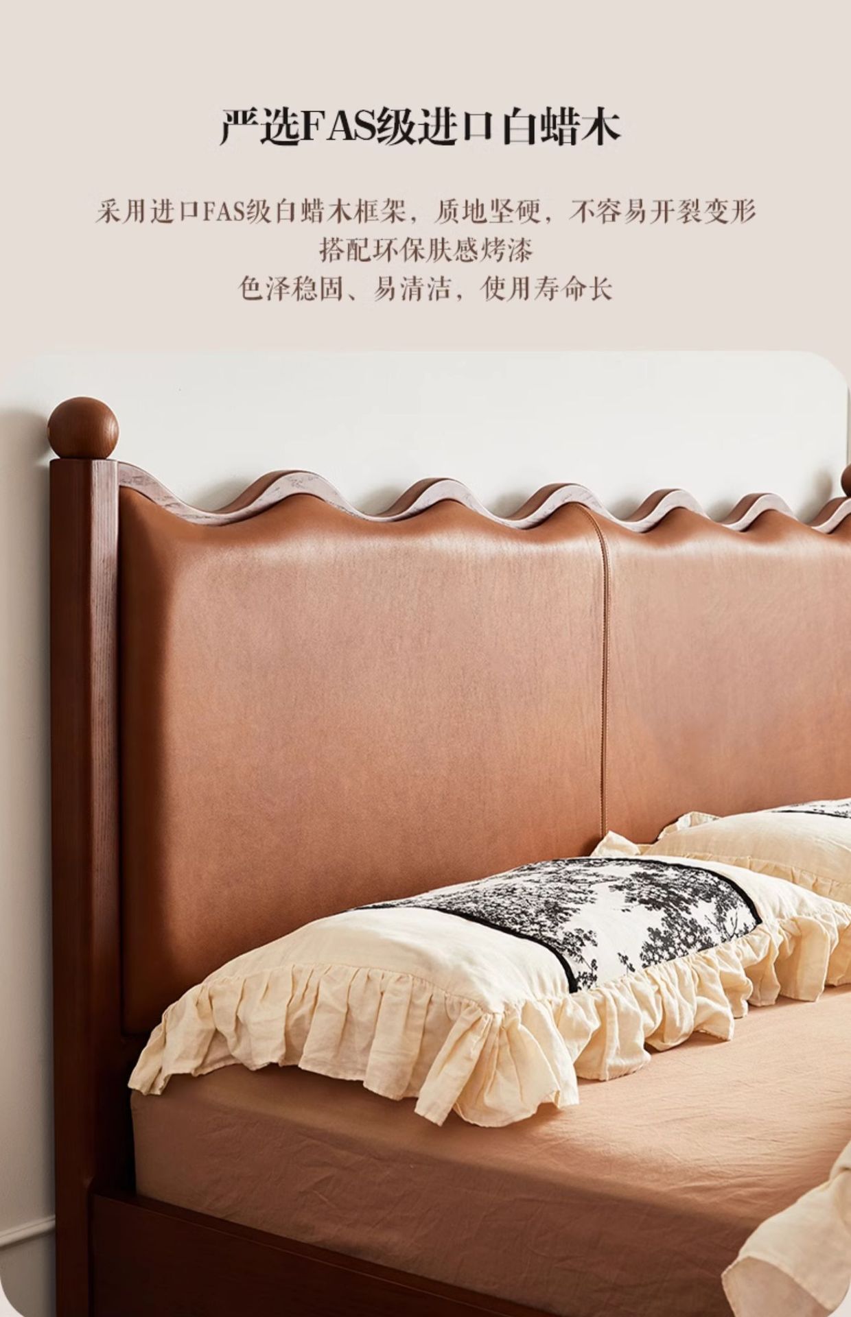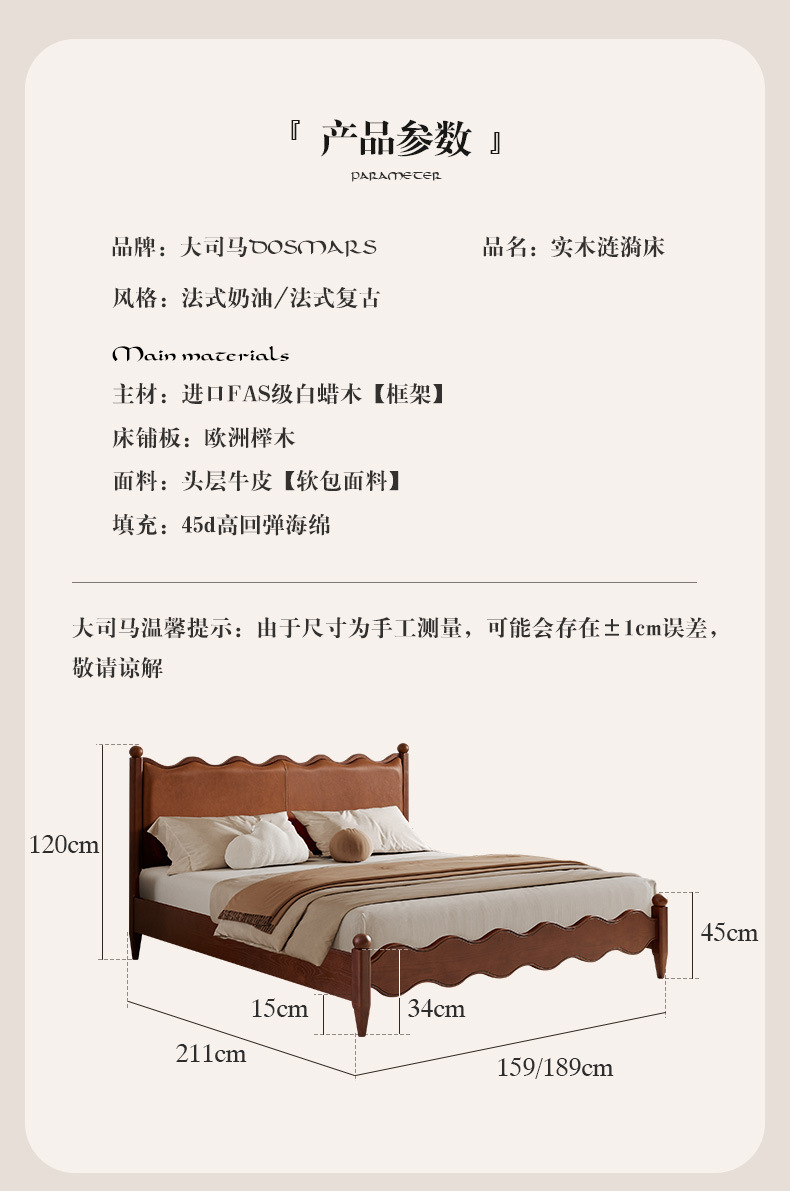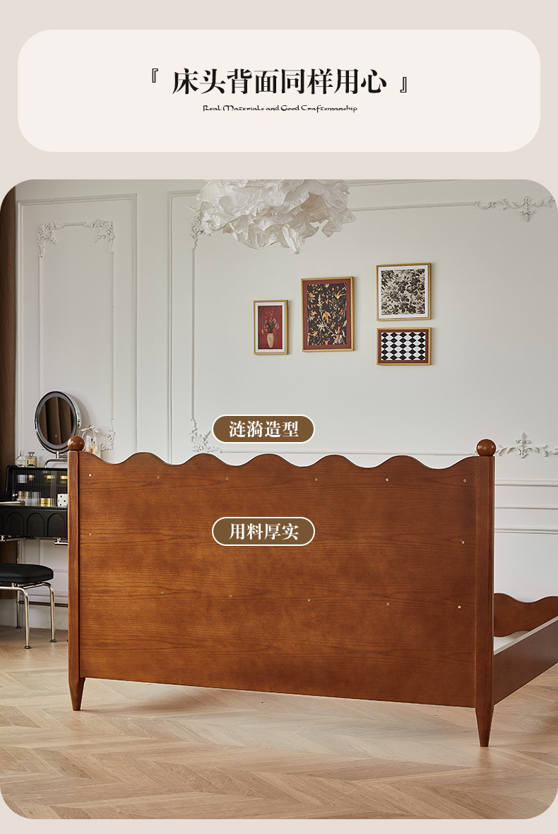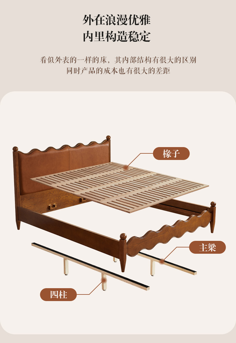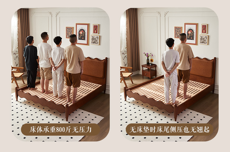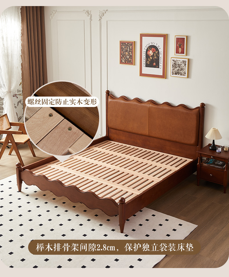 Cama ondulada de cuero de madera maciza [marco de cama inteligente + 0 colchón de presión]