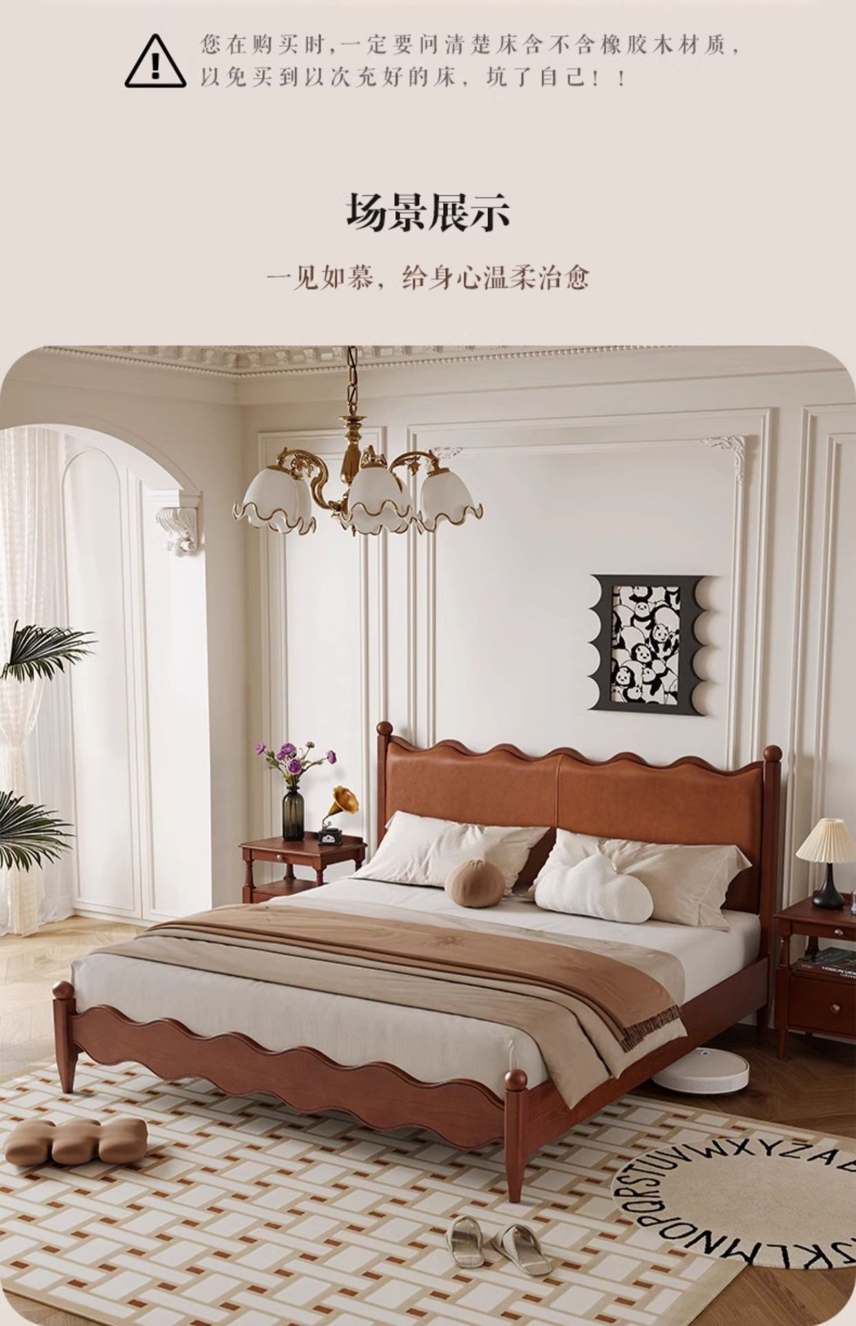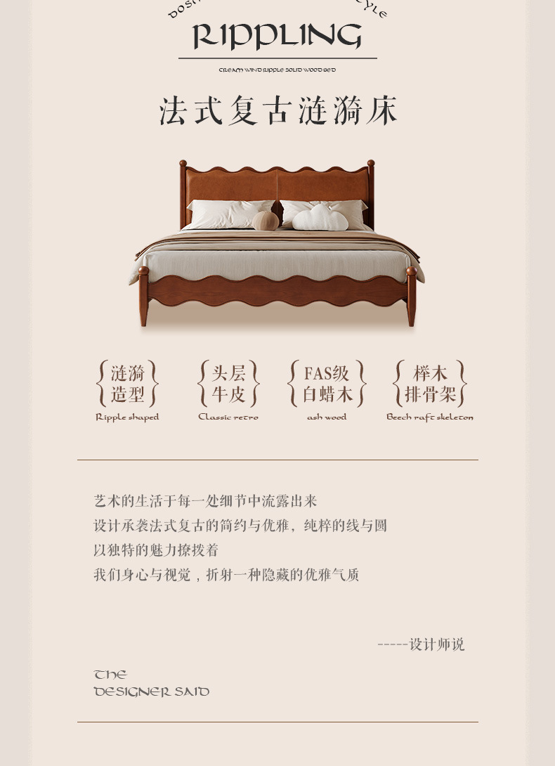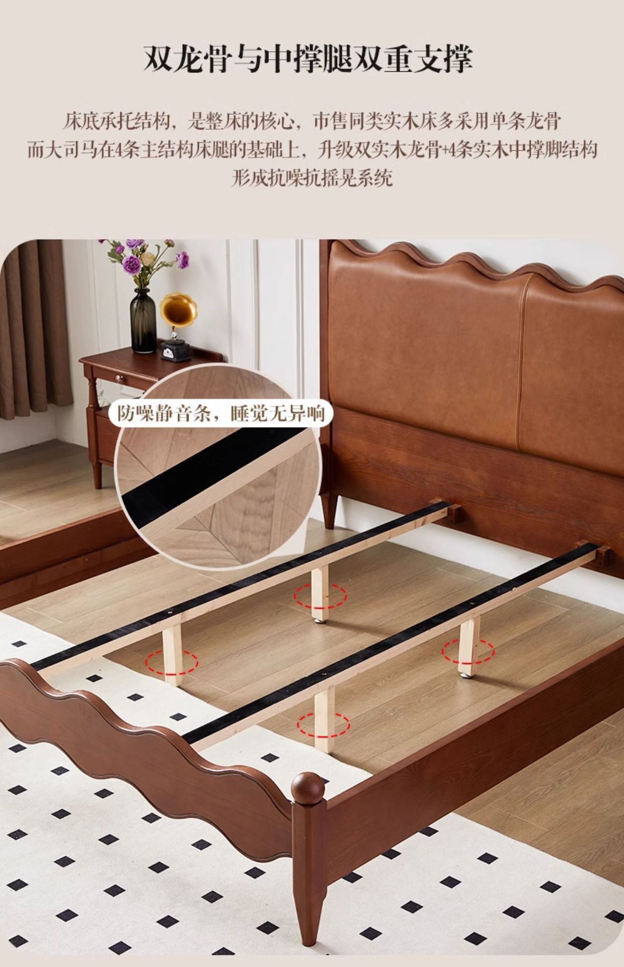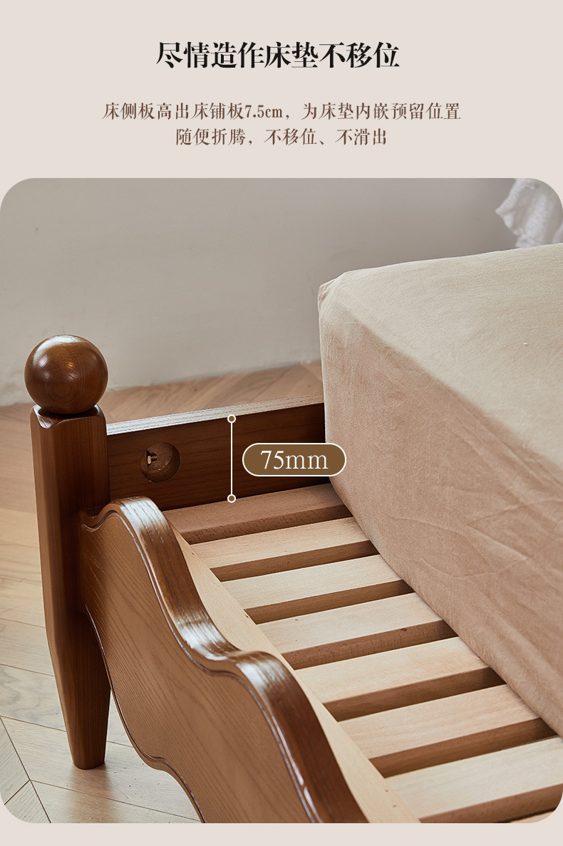 Cama ondulada de cuero de madera maciza [marco de cama inteligente + 0 colchón de presión]