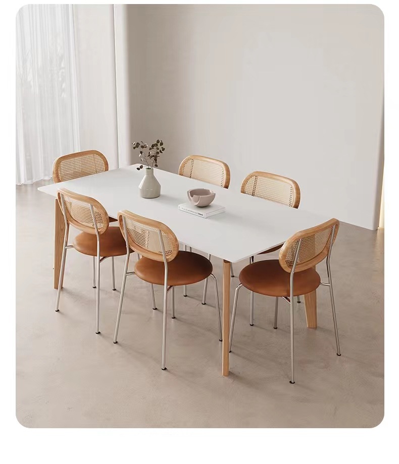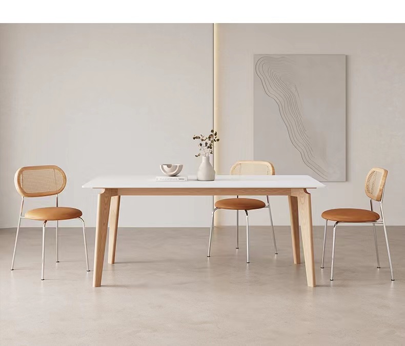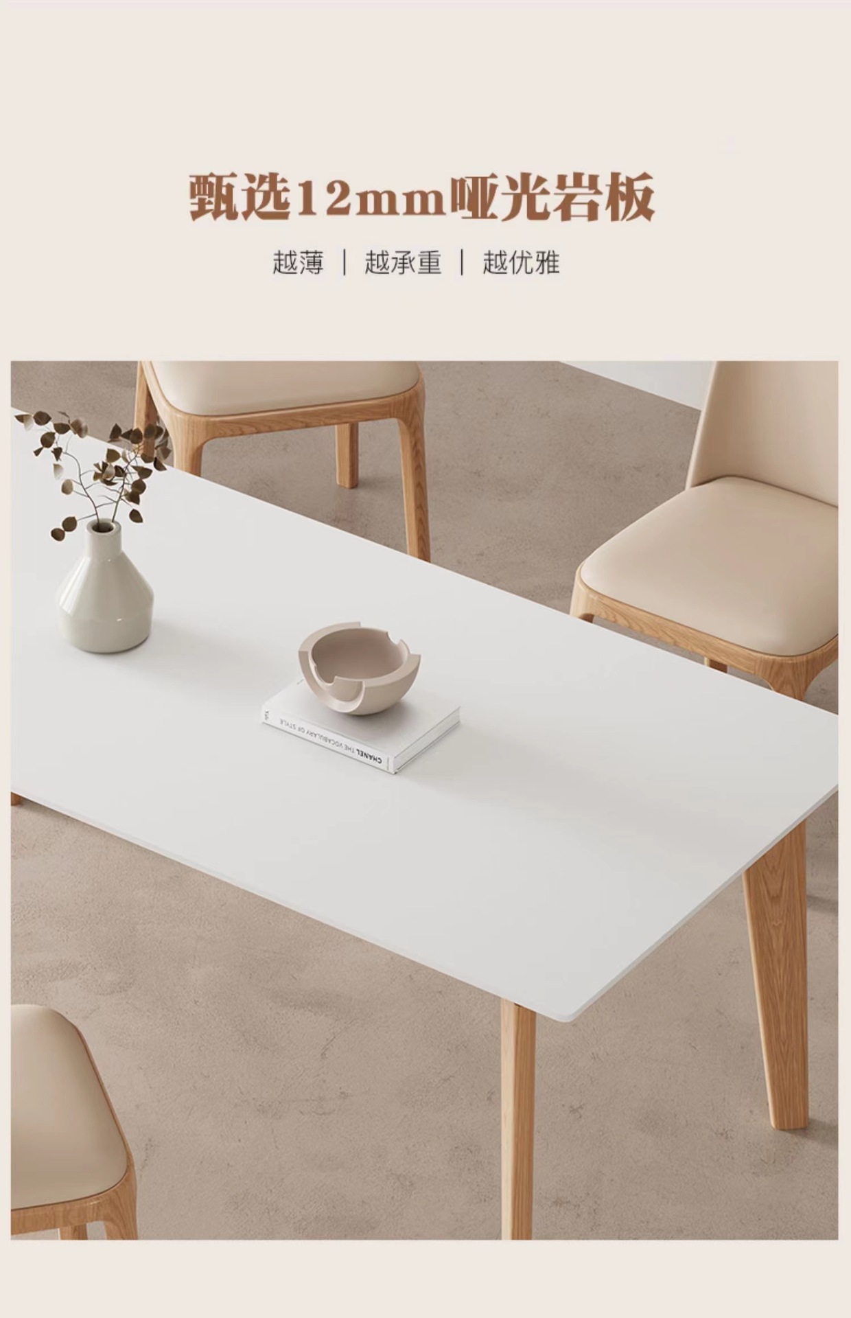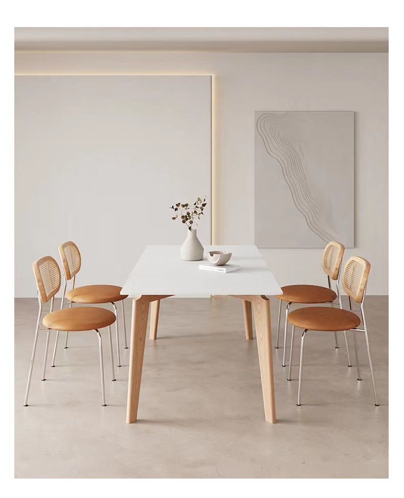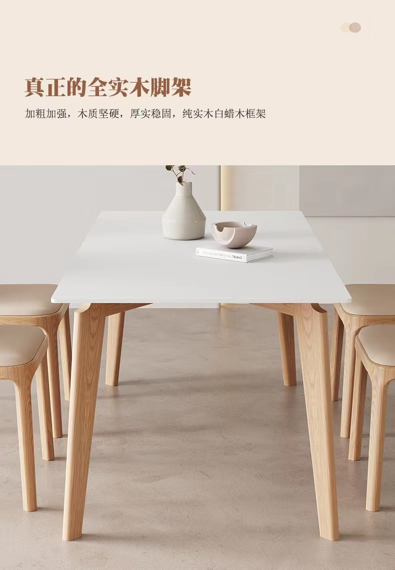 Diseñador delifeng Placa de roca antibacteriana mesa de comedor y silla combinación cera blanca rectangular pequeño apartamento minimalista mesa de comedor