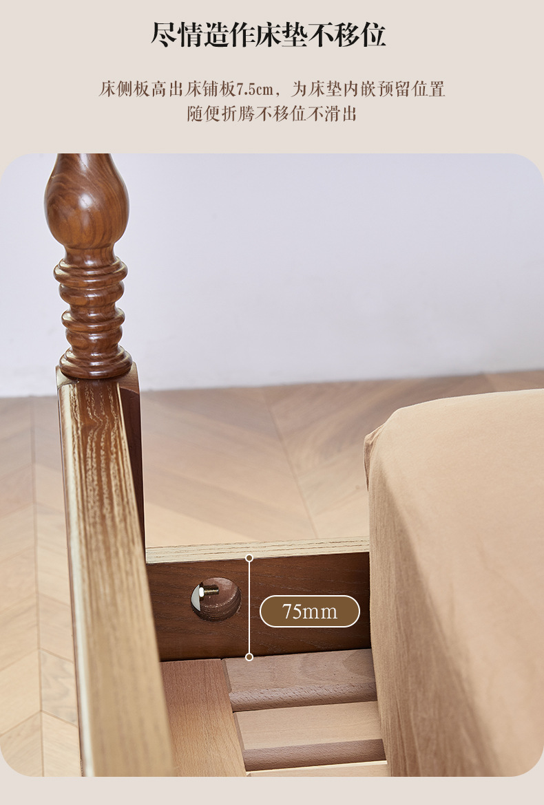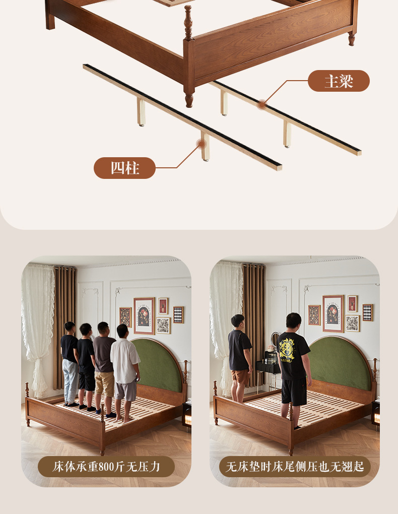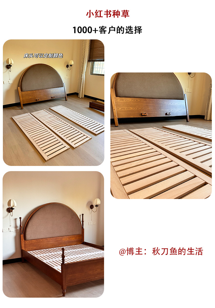 Danfansi estilo chino medio estilo francés 1 metro 8 fresno pequeño apartamento ahorra espacio todo el dormitorio principal de madera maciza cama de matrimonio doble