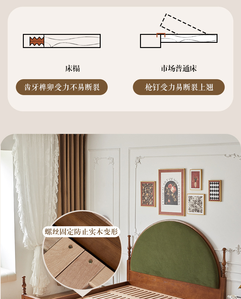 Cama de fresno de media luna [tabla de cama de pino]