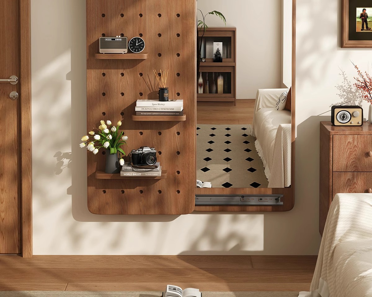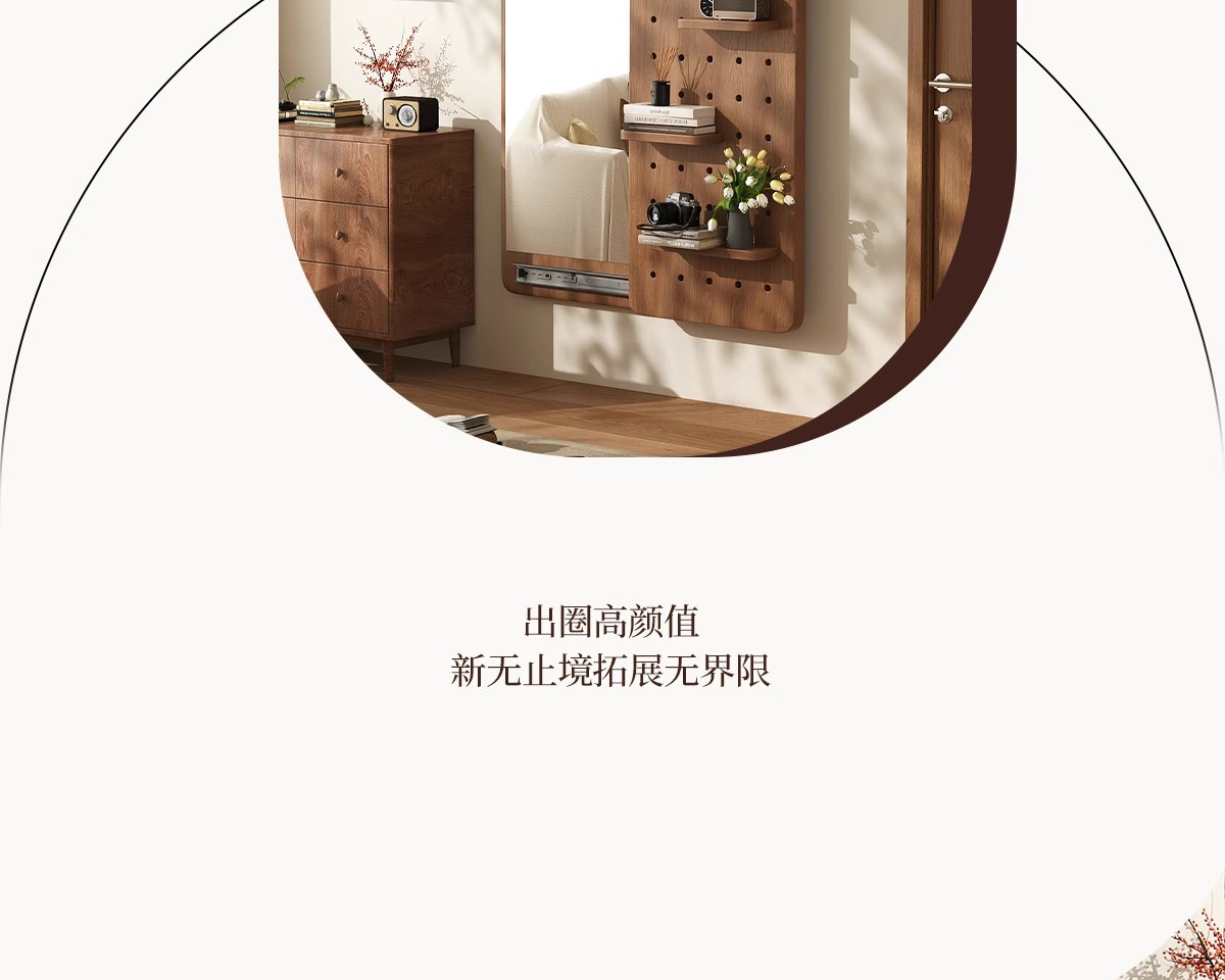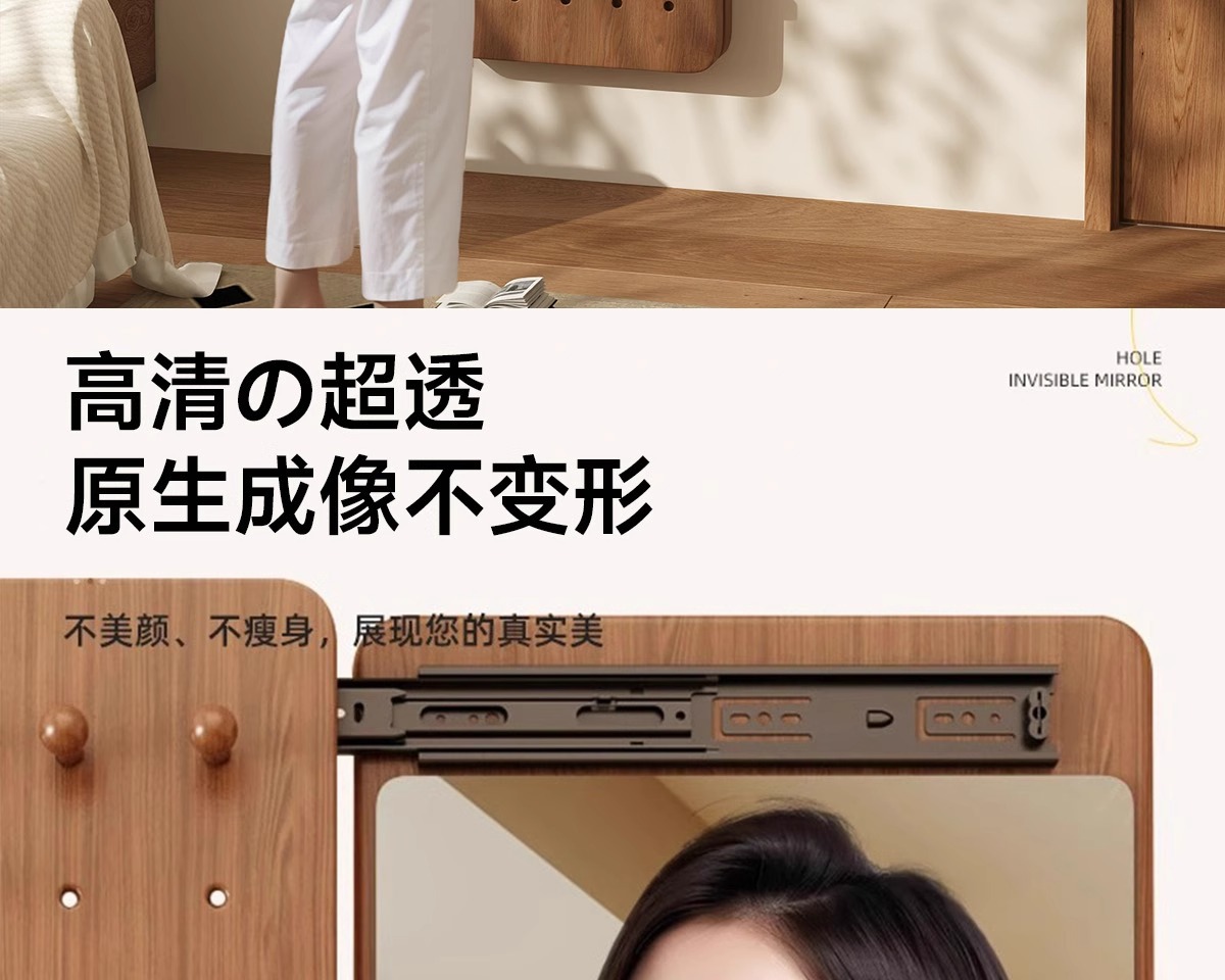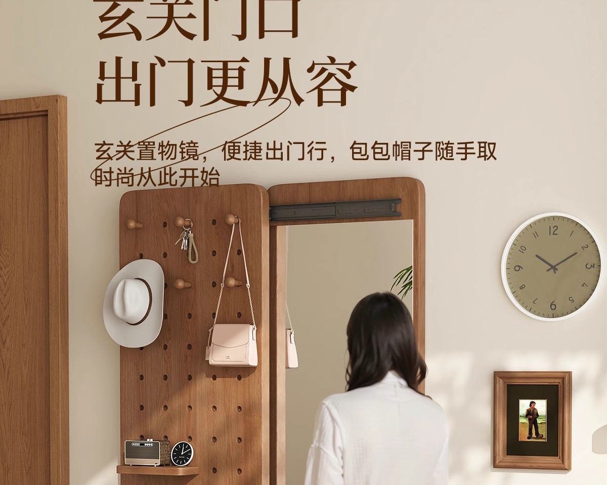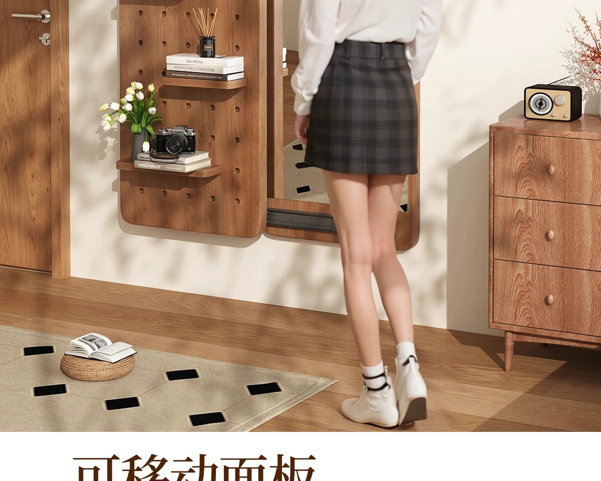 Espejo de cuerpo entero de tablero de agujero de madera maciza Espejo de cuerpo completo de pared de modelado oculto Espejo de tocador para el hogar de dormitorio Espejo de entrada integrado