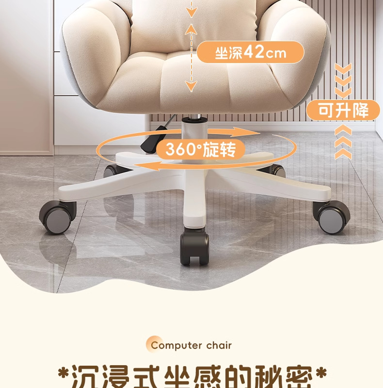 Silla de computadora, silla de dormitorio, dormitorio de niña, cómodo, sedentario, escritorio y silla de estudiante universitario, taburete de tocador, silla giratoria en vivo para oficina