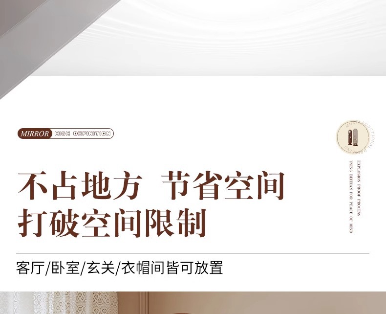 | Espejo de ropa espejo de aterrizaje de todo el cuerpo | El estante de la capucha de la ropa de espejo está integrado. |