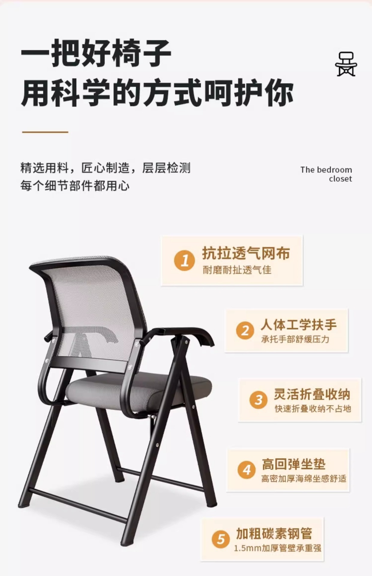 Sillas plegables sillas de ocio domésticas cómodas sillas de oficina transpirables sillas de entrenamiento de metal al aire libre