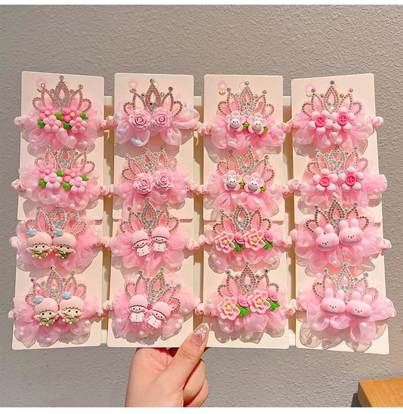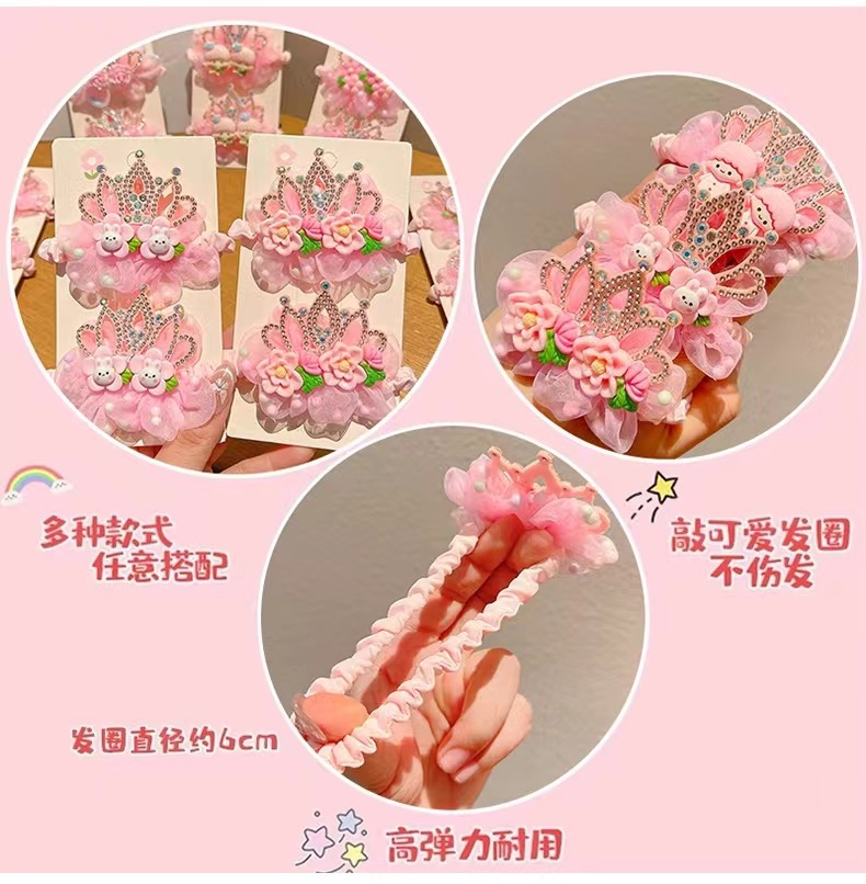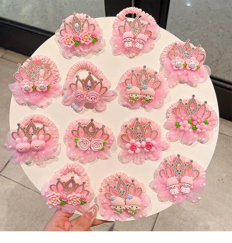 Niños super inmortal corona flor del intestino delgado correa de goma toque de cabeza rosa para niñas bebé cuerdas de cabeza de cola de caballo