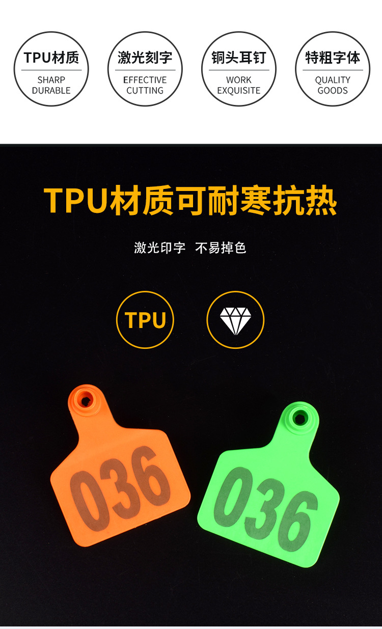 Cerda Etiqueta de oreja oveja Etiqueta de oreja ganado y oveja Etiqueta de oreja número Etiqueta de oreja de cerdo animal veterinario TPU ganado Etiqueta de oreja