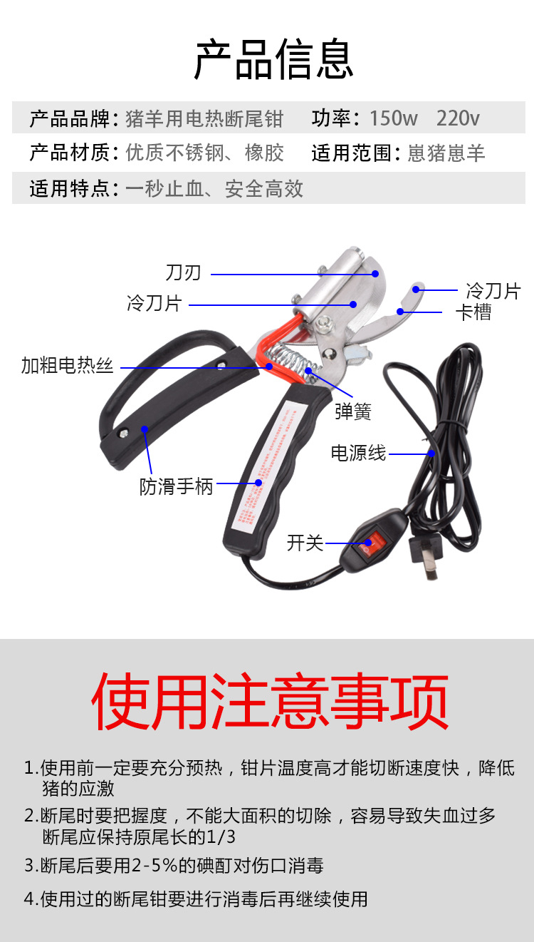 Alicates de corte de cola de calefacción eléctrica para lechones Alicates de corte de cola para lechones