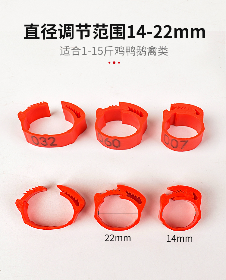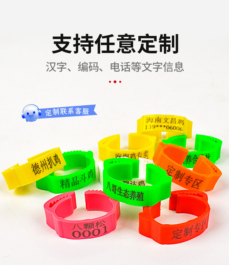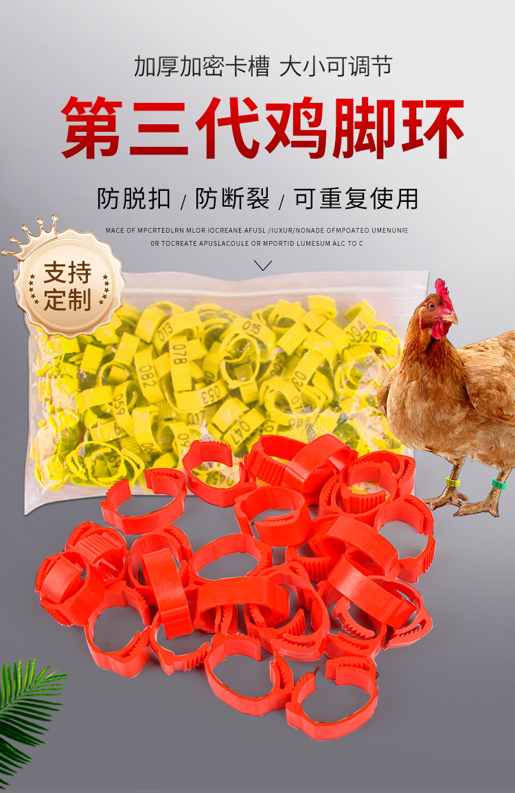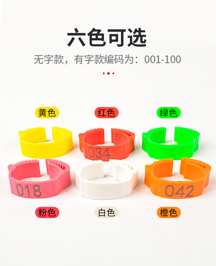 Anillo de pie de pollo tipo fichaje, anillo de pie ajustable, marca de identificación, anillo de etiqueta de plástico general para pollo