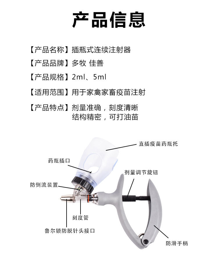 Dispositivo de vacuna de cerdo de inyección continua veterinaria importada artefacto ganado ovino pollo pato inyección continua automático ajustable vacuna