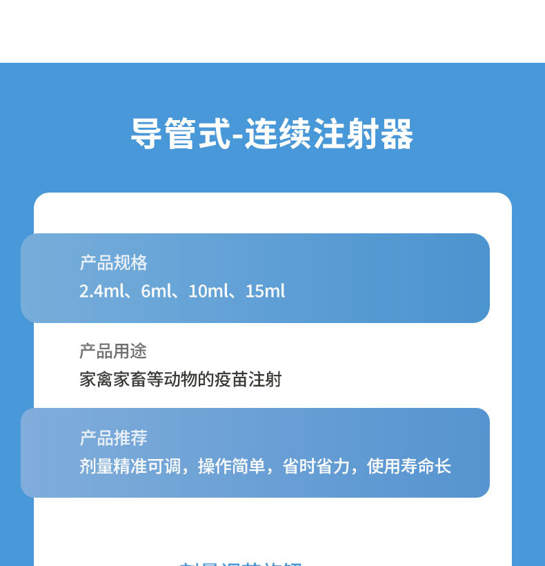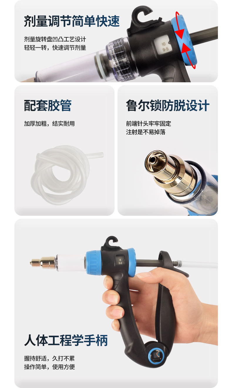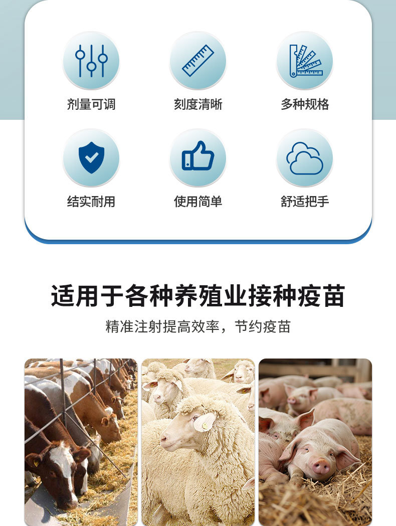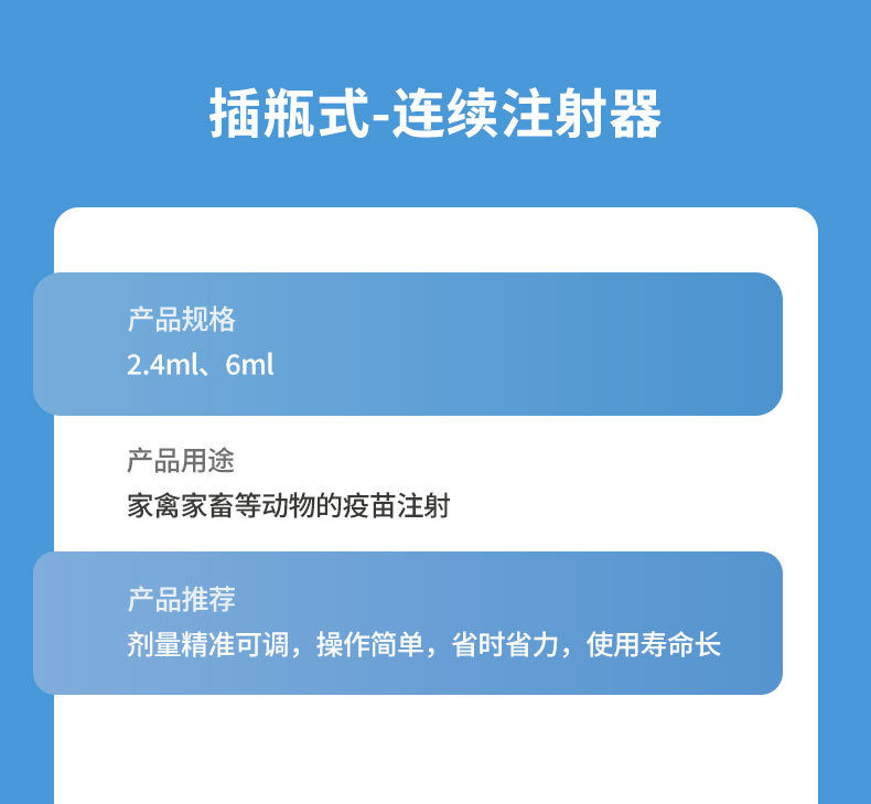 Vacuna de inyección continua veterinaria 2,4 ml 6ml 10ml 15ml tipo tubo tipo botella de inserción cerdo, vaca, oveja, pollo y pato
