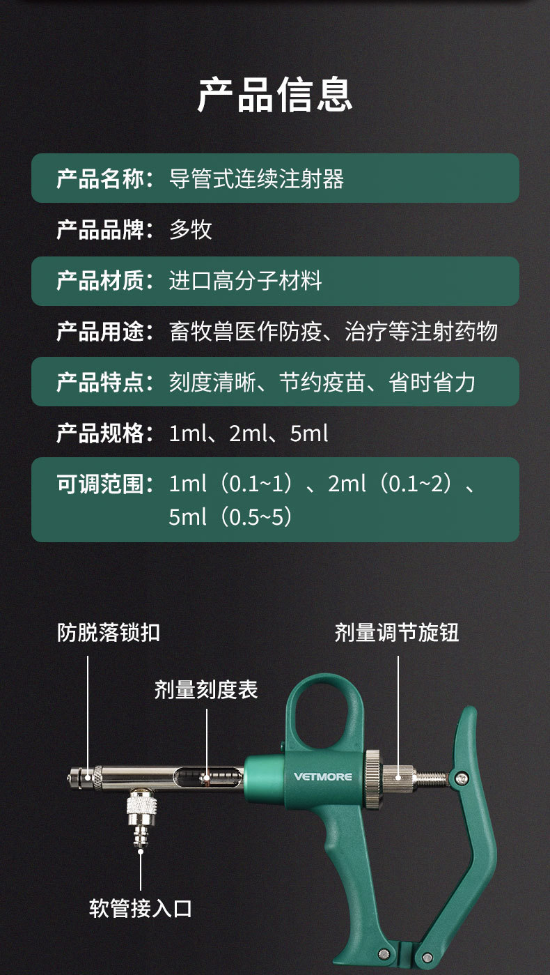 Jeringa continua tipo tubo, vaca, oveja, cerdo, pollo, pato, ganso, pescado, inyección continua ajustable, dispositivo de vacunación, aves de corral