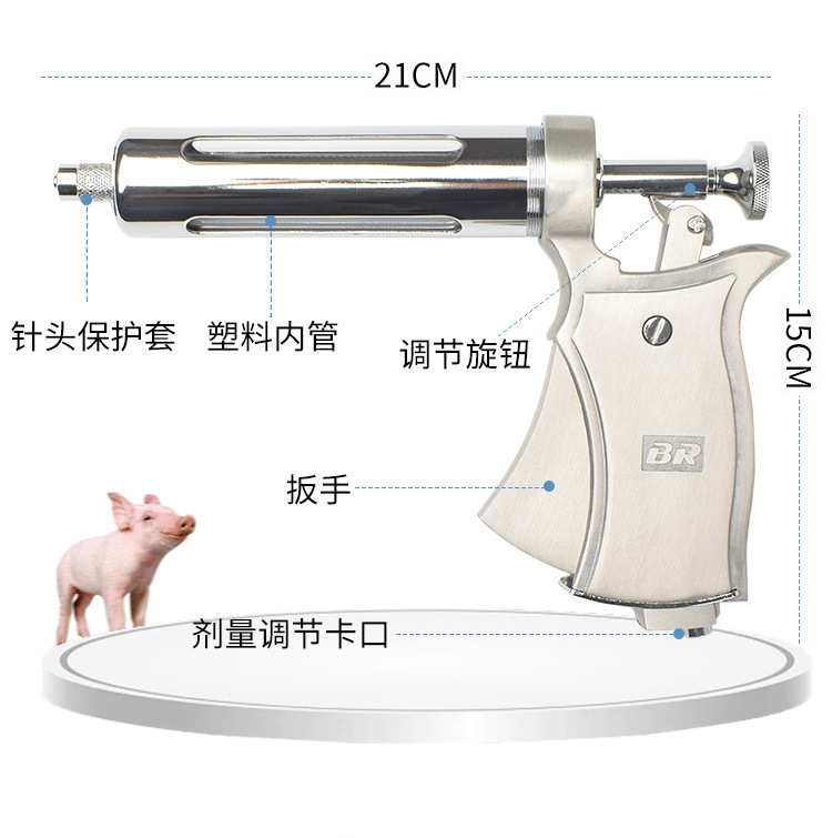 inyector de vacunación continua semiautomático de acero inoxidable veterinario inyector de vacunación ajustable de metal para cerdos 50ml