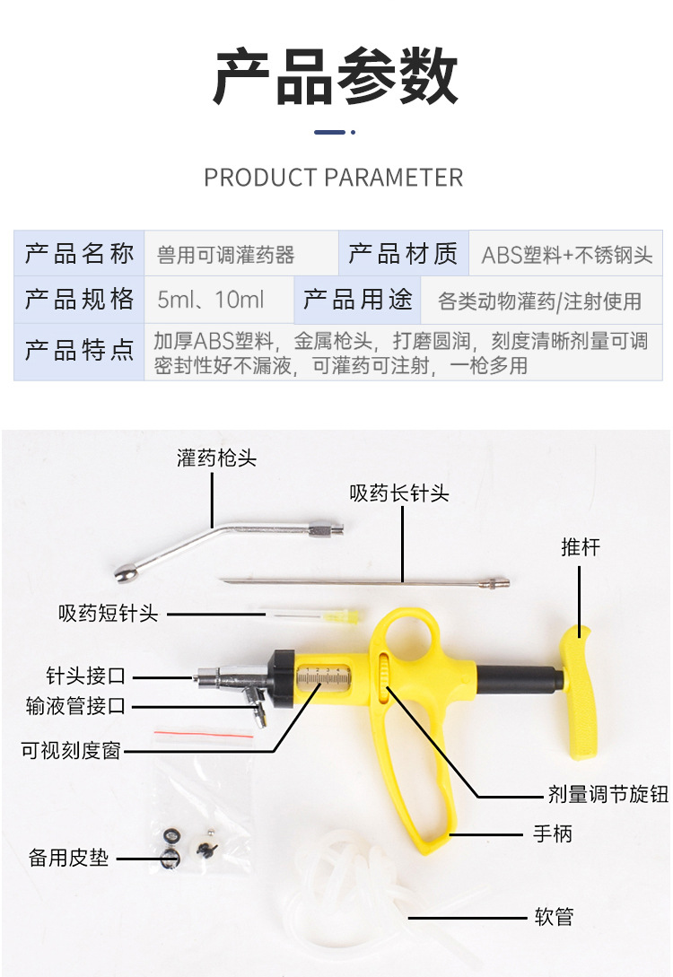 Veterinaria continua riego pistola de acero inoxidable cerdo, ganado vacuno y ovejas medicina alimentador ajustable alimentación pistola medicina dispensador