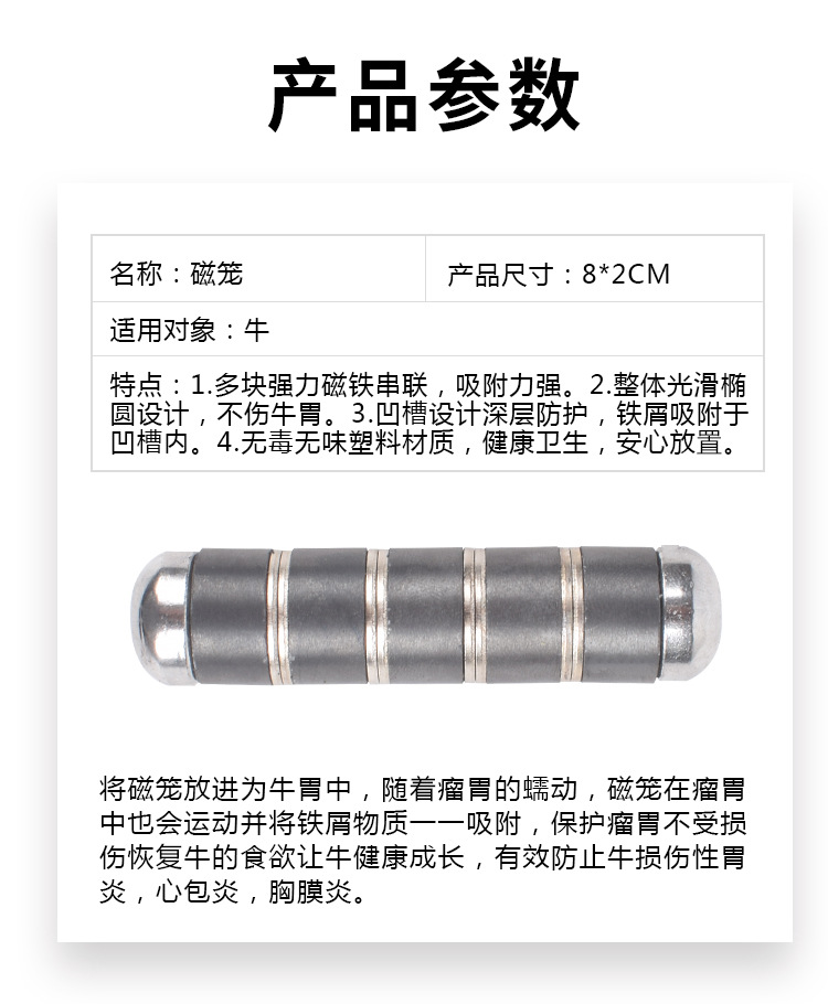 Carne de vacuno estómago jaula magnética ruminal hierro lechón vaca comer magnético de acero magnético fuerte imán de vaca hierro lechón extractor de hierro suministros de ganado