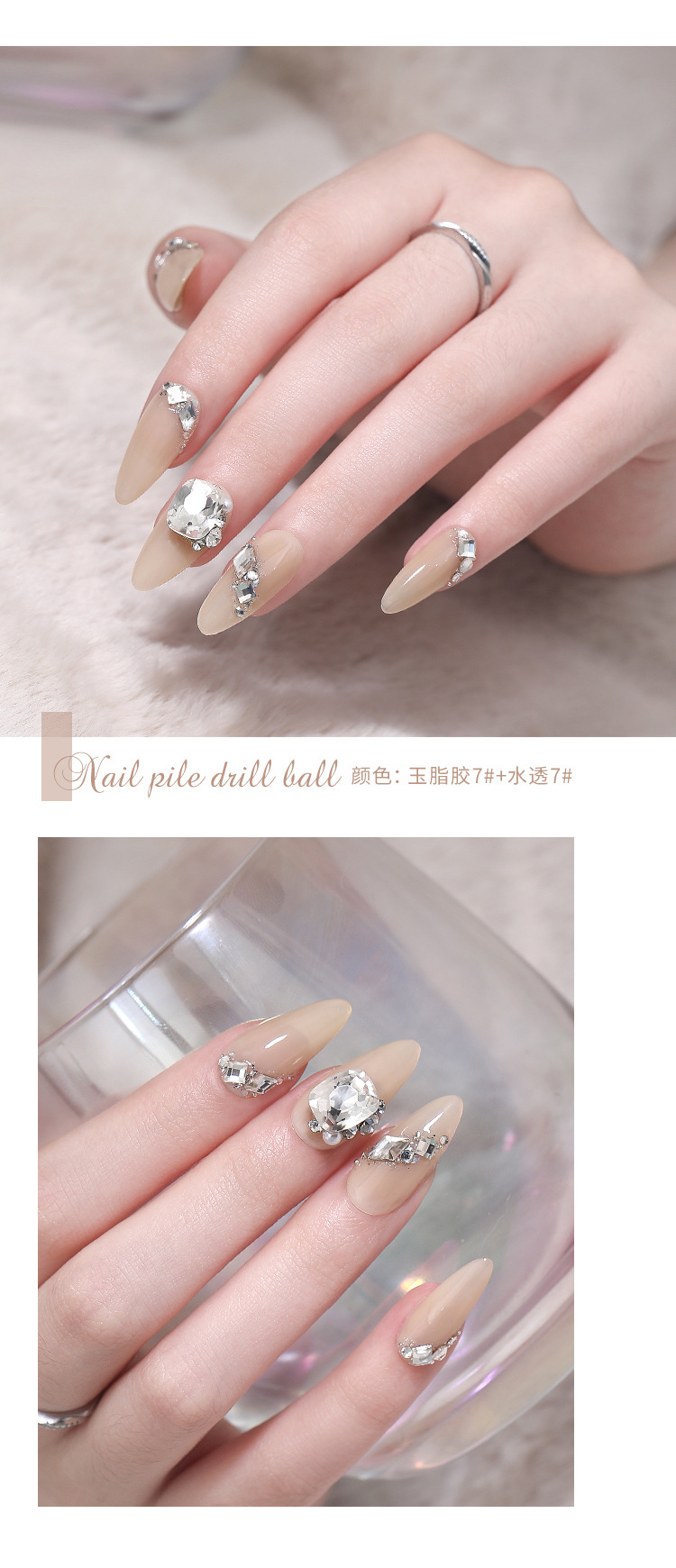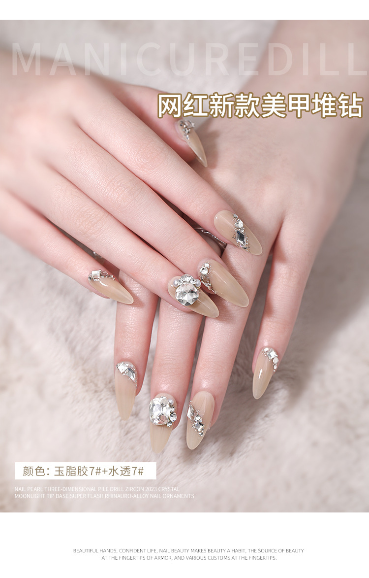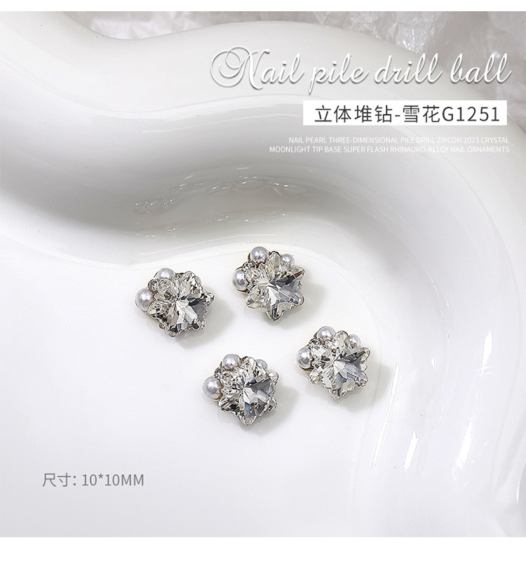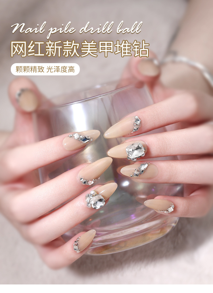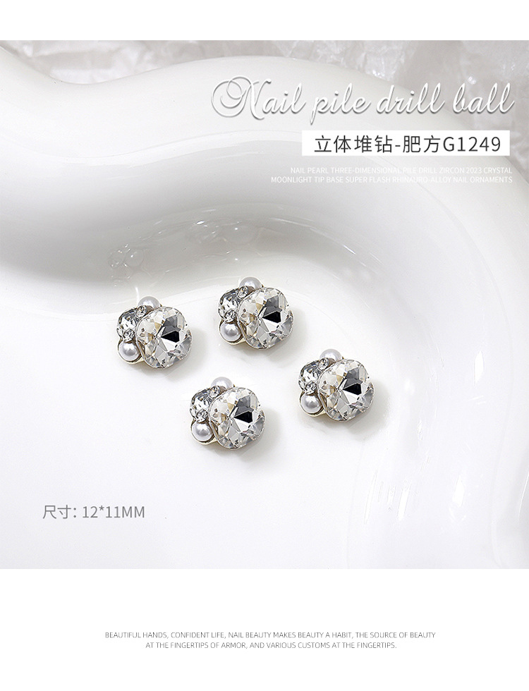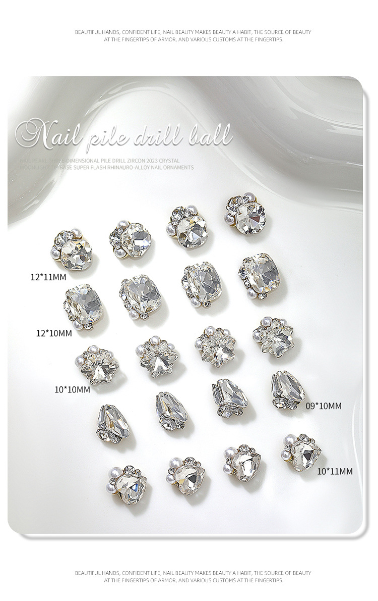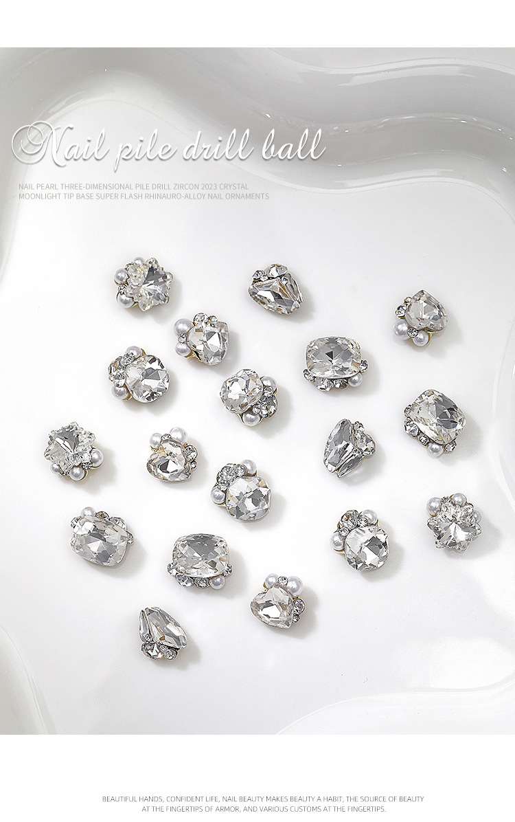 Popular online celebridad uñas pila de cristal diamante acabado blanco súper brillante corazón torcido grasa cuadrado incrustaciones perla decoraciones de uñas al por mayor