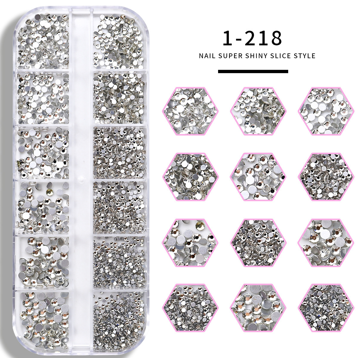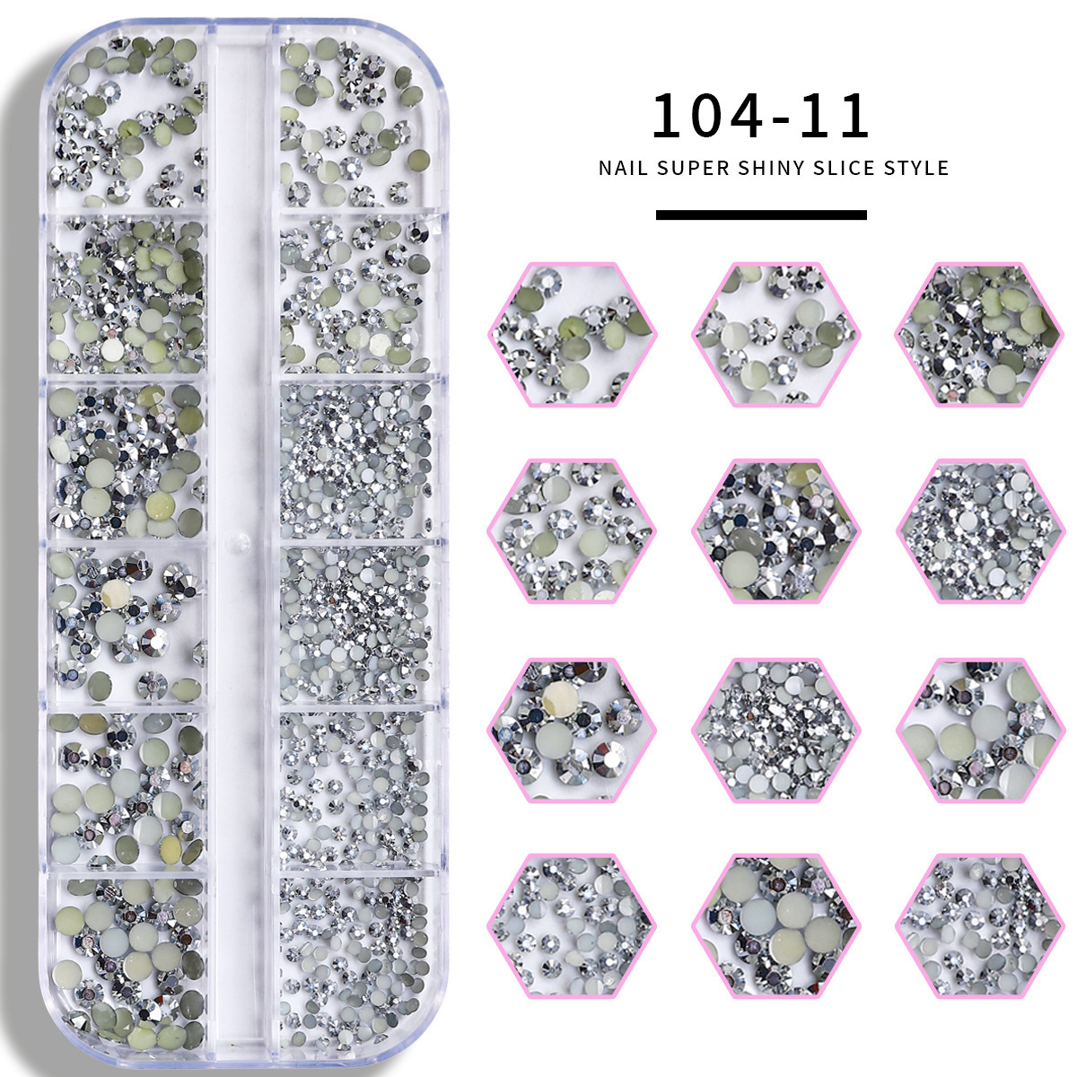 Joyas de uñas, diamantes planos, decoración de uñas, diamantes de imitación de fondo plano, 12 cuadrados, diamantes blancos, diamantes AB, diamantes, joyas de uñas mixtas de color