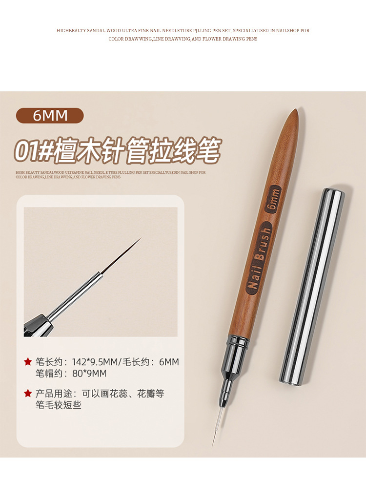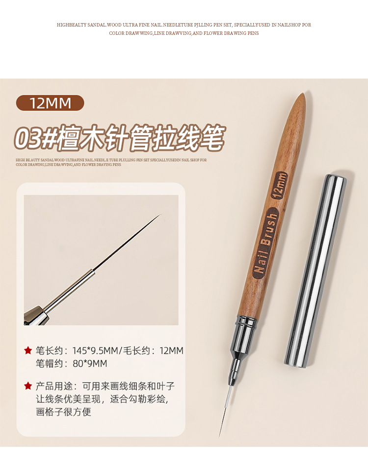 Arte de uñas aguja tubo dibujo pluma ultra-fino profesional sándalo pintura pluma larga y corta línea de gancho flor especial fototerapia pluma al por mayor