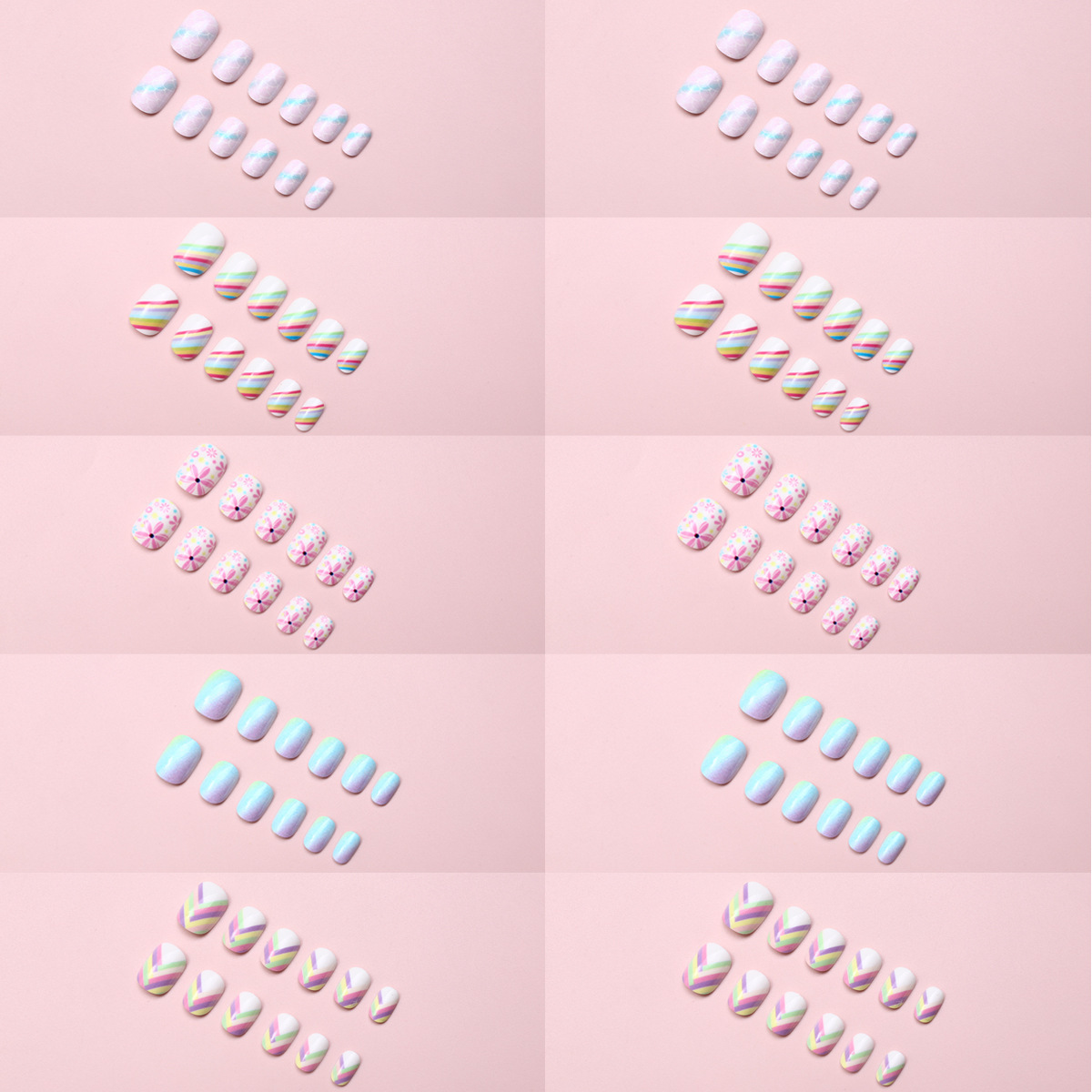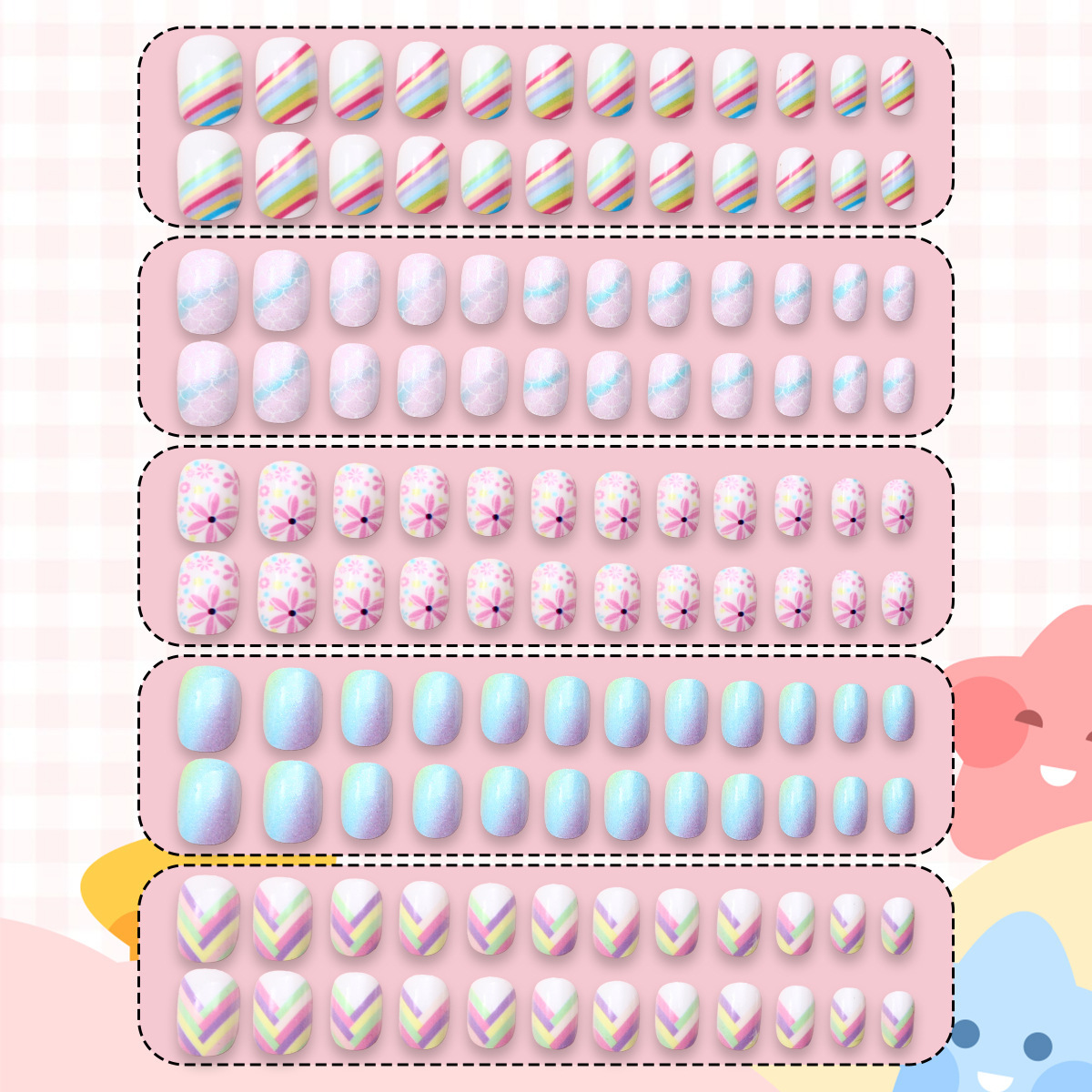 Nuevo niño impresión UV desgaste de uñas 120 piezas de caja de uñas falsas lindas dibujos animados mezclados parches de uñas